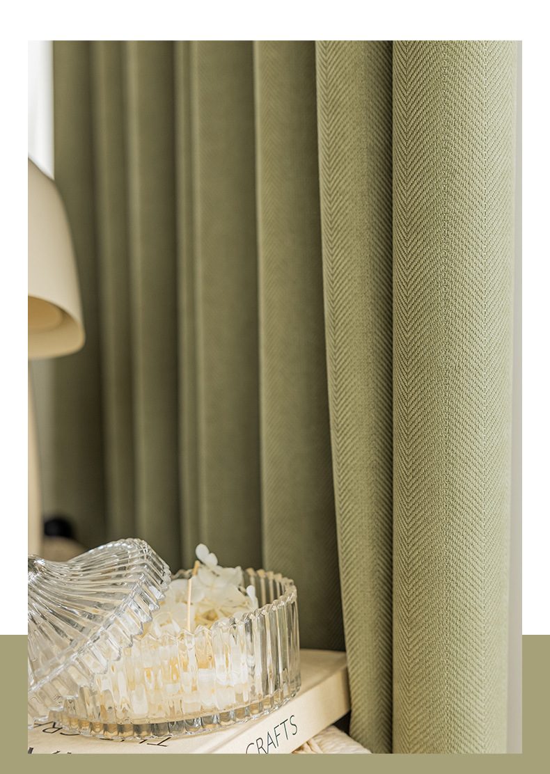 Chenille 커튼 헤링본 높은 블랙 아웃 커튼 밀크 티 컬러 Matcha 그린 간단한 두꺼운 단색 커튼 Keqiao스토어 가기