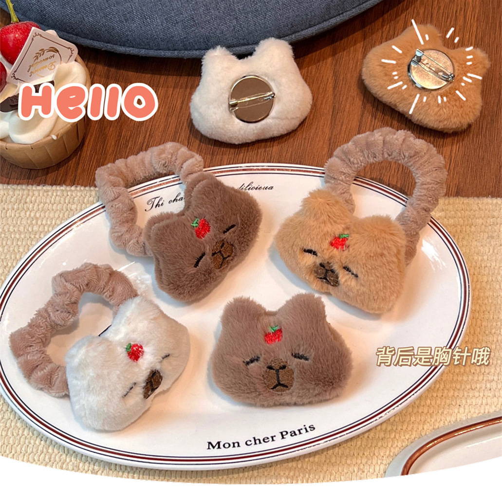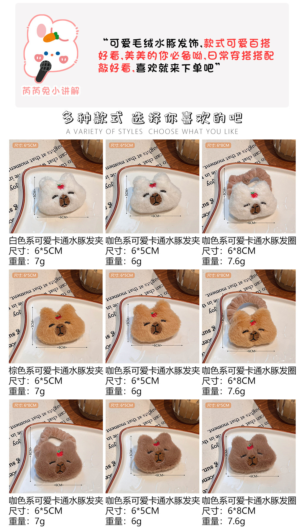 귀여운 만화 봉제 물 기니피그 인형 머리핀 소녀 인형 장식 브로치 말꼬리 머리 로프 헤어 액세서리 도매스토어 가기
