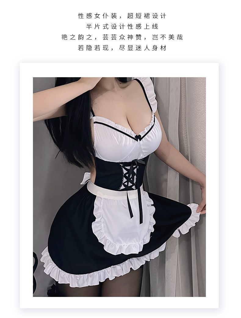 Zokailian/ZOCOA 귀여운 메이드 V 넥 세트 여성의 섹시한 란제리 섹시한 메이드 딥 V 스트랩 스플릿 세트