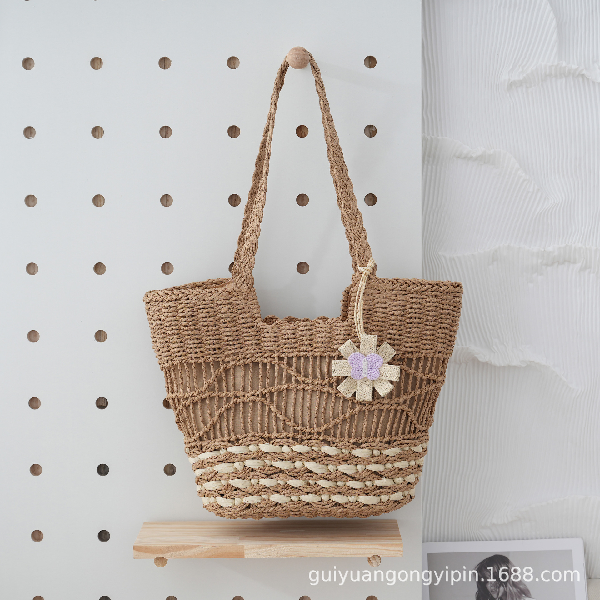 손으로 짠 밀짚 숄더백, 안감이 있는 다용도 대용량 토트백, 여성용 중공 골판지 여름 해변 가방
