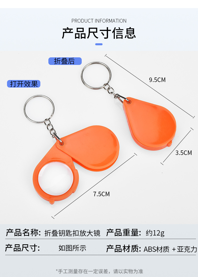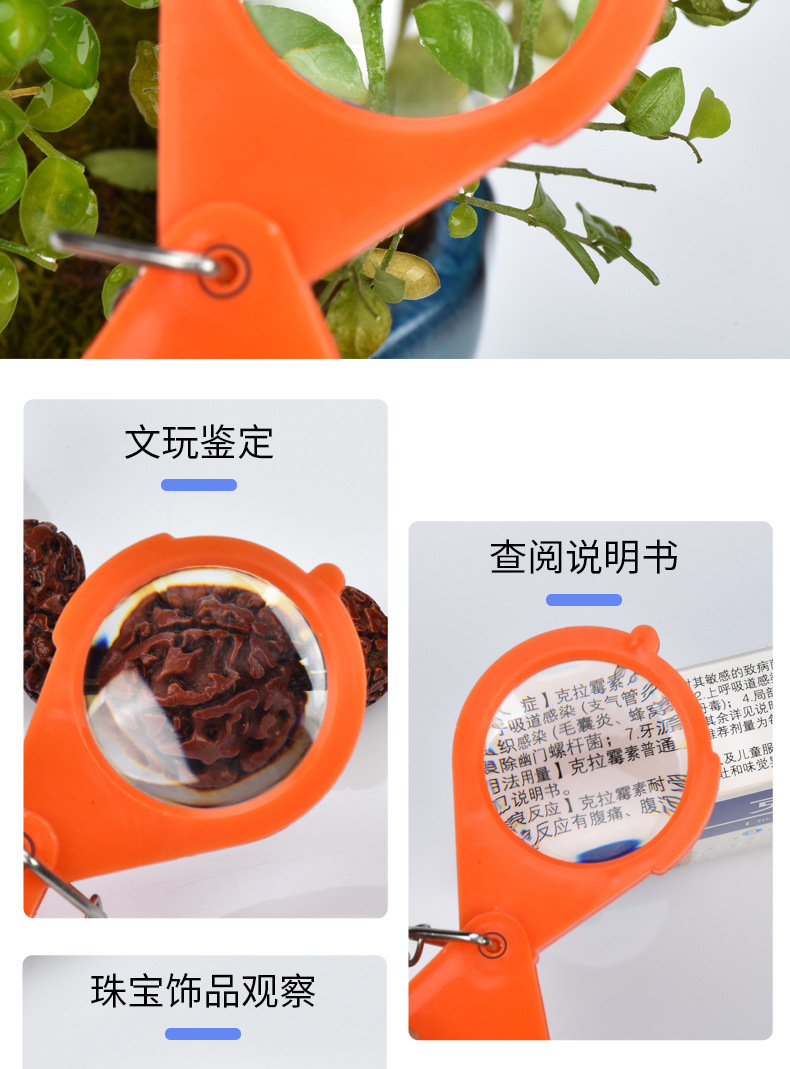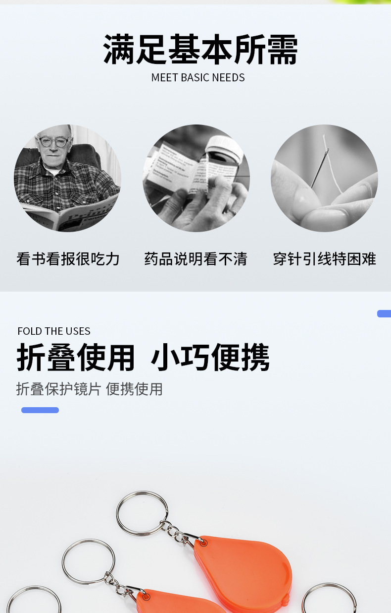 키 체인 접이식 돋보기 휴대용 미니 작은 어린이 유치원 학생 HD 펜던트 노인스토어 가기
