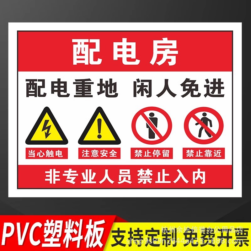 • 배전소, 유휴자 금지, 가로 버전 15x20cm(PVC 보드)