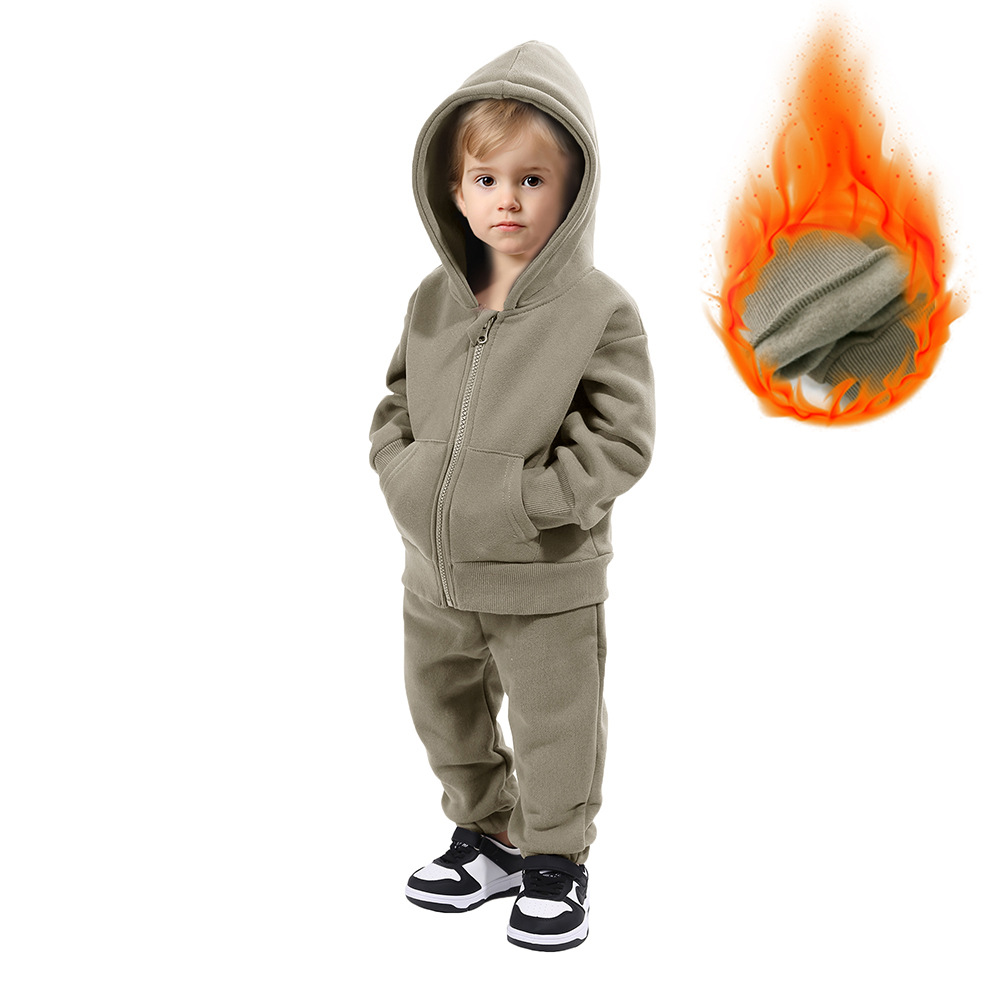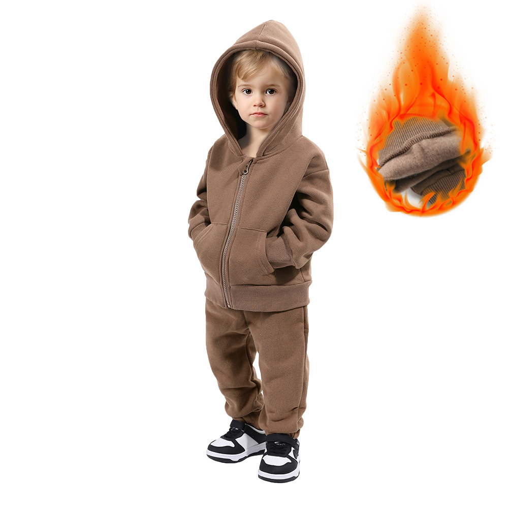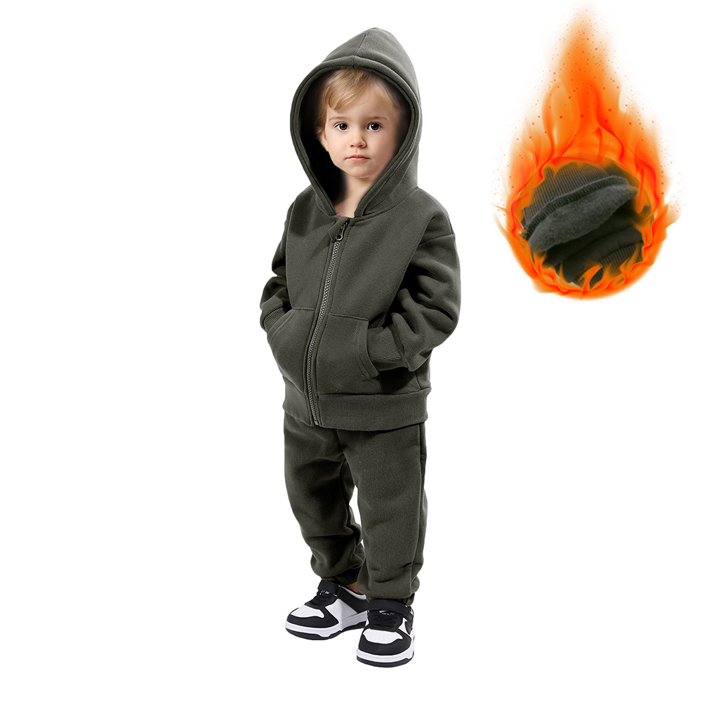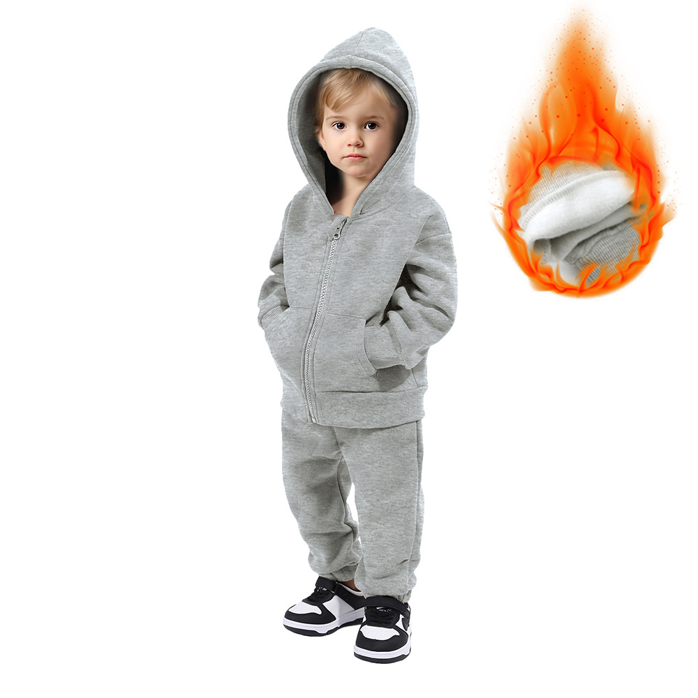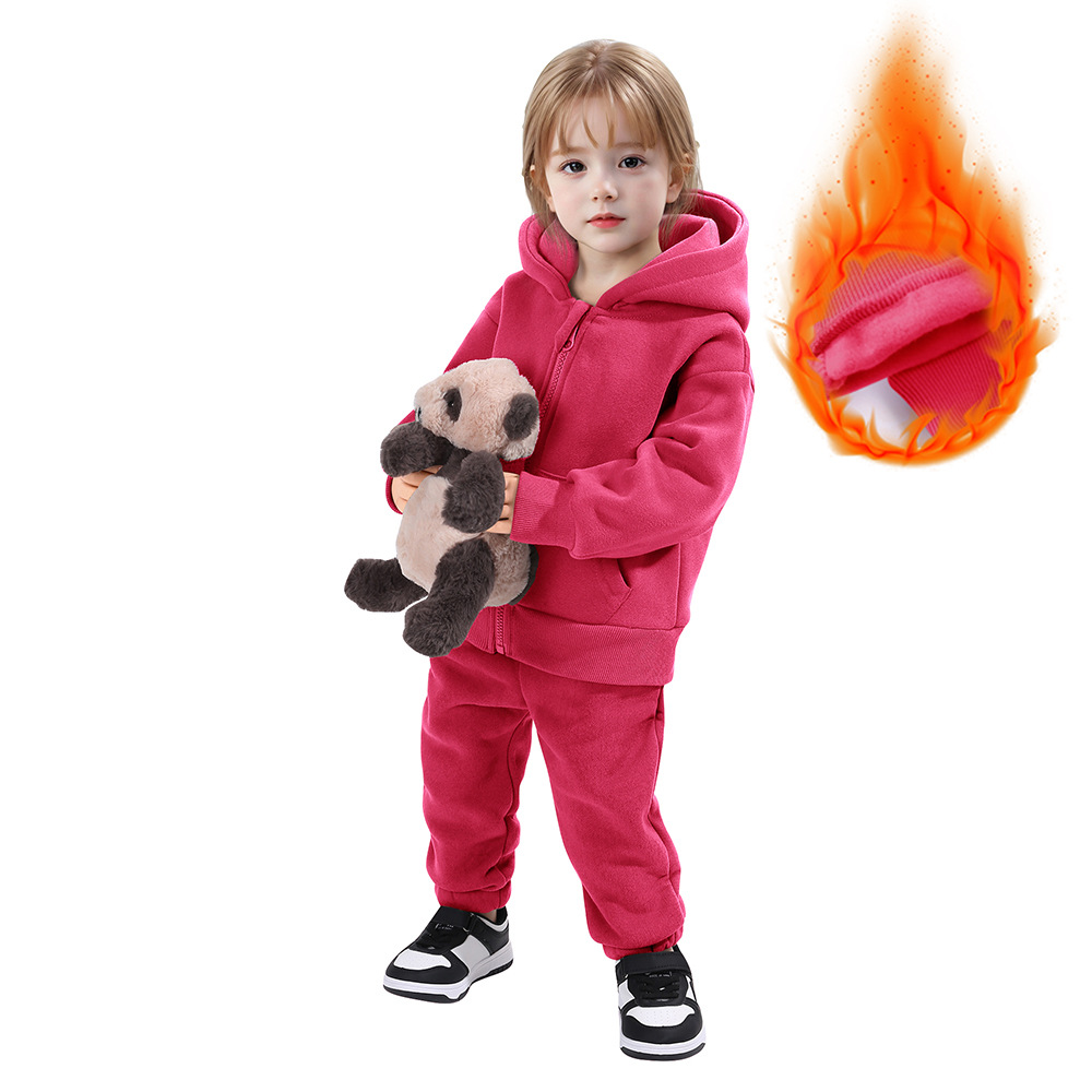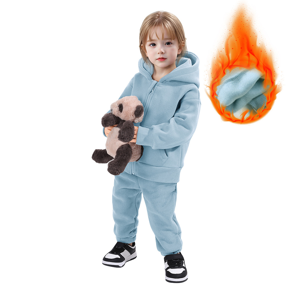【款式】儿童运动套装男女童卫衣套装加绒保暖长袖两件套宝宝衣服