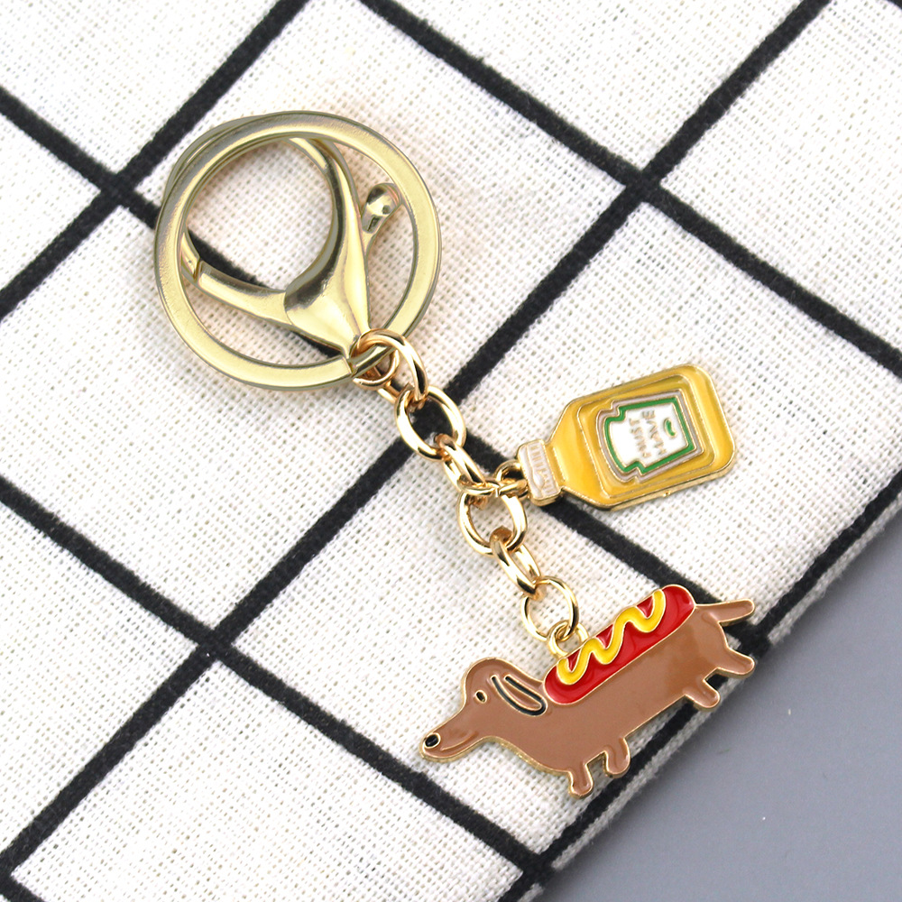 유럽과 미국의 국경 간 뜨거운 판매 만화 핫도그 샐러드 소스 병 액세서리 조합 키 체인 개인화 된 기념 키 링 펜던트