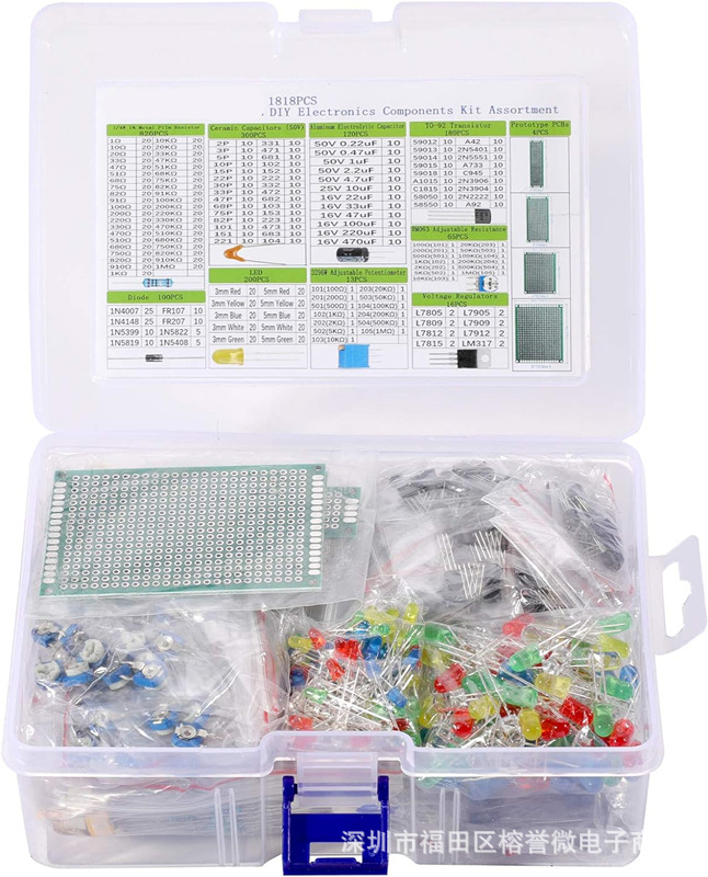 1818PCS 위안 박스 완전한 컬렉션 직접 플러그 전해 커패시터 LED 발광 다이오드 삼극 1/4W 저항