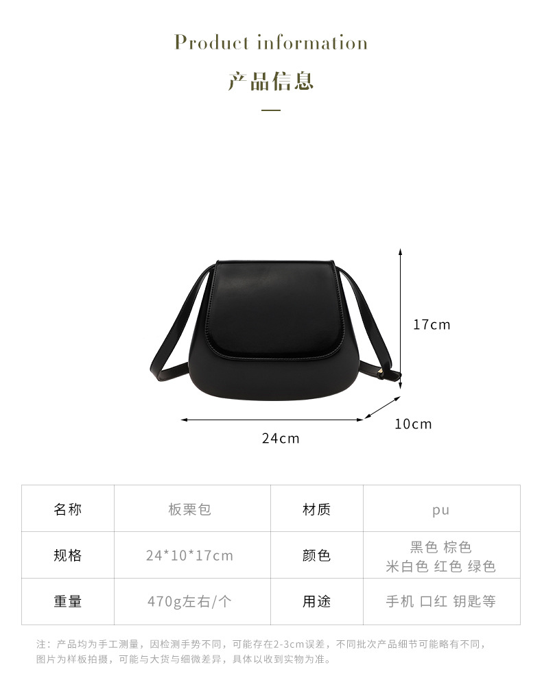 새로운 밤나무 가방 여성 고급 질감 안장 가방 패션 올 매치 틈새 디자인 레트로 크로스 바디 작은 광장 가방 도매스토어 가기