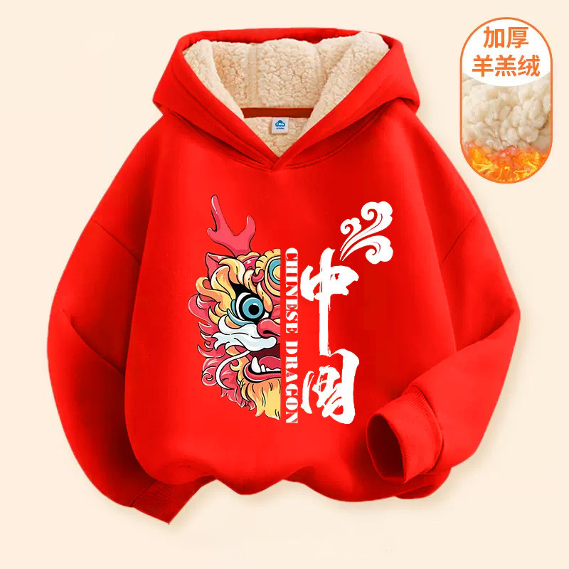 아동복 새해 인사말 옷 남학생 기모 스웨터 어린이 원피스 벨벳 따뜻한 탑 소년의 두꺼운 바닥 셔츠 겨울 패션