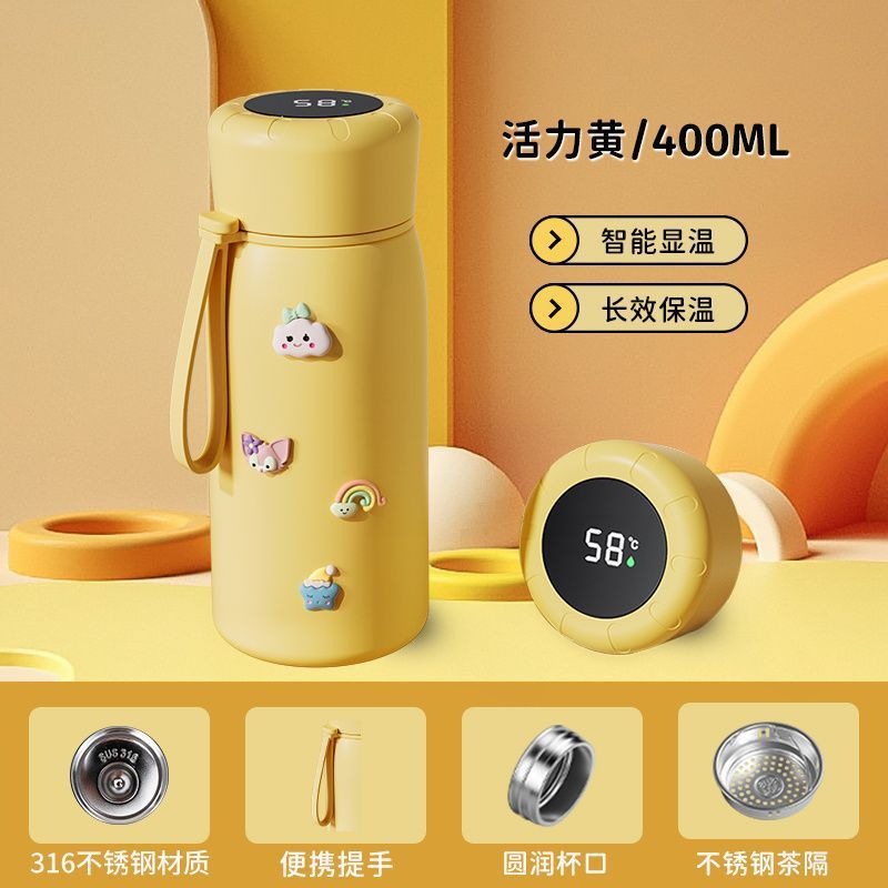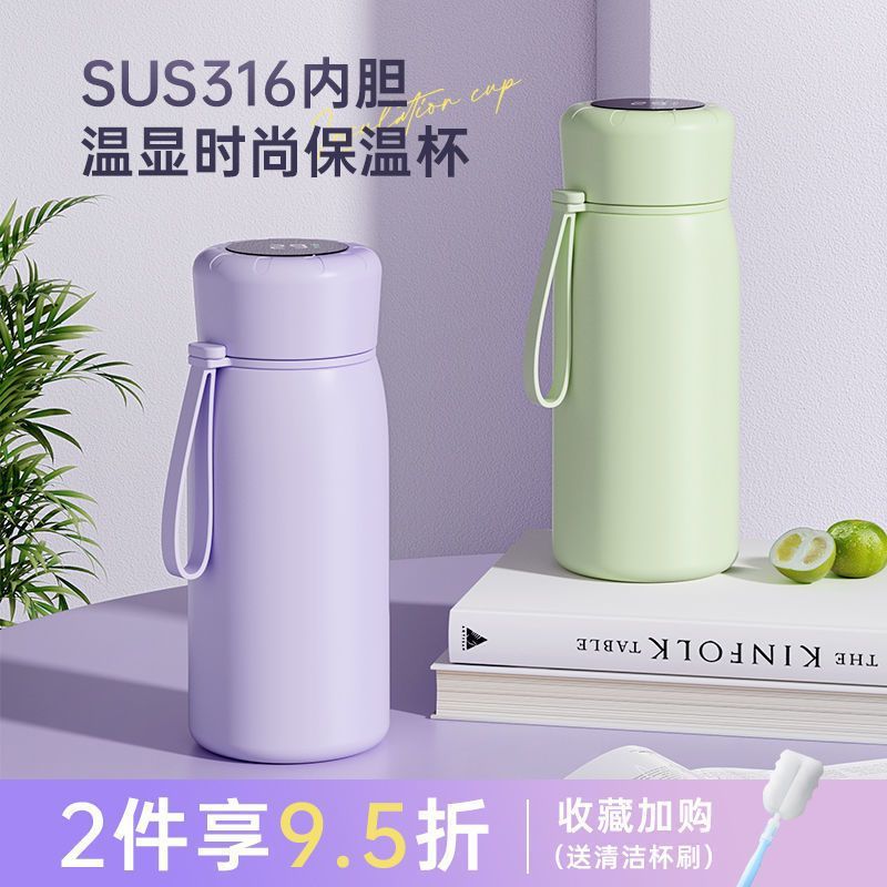 열 절연 물 컵 식품 학년 316 스테인레스 스틸 컵 대용량 휴대용 고등학교 어린이 학교 온도 디스플레이