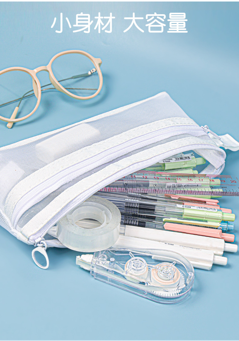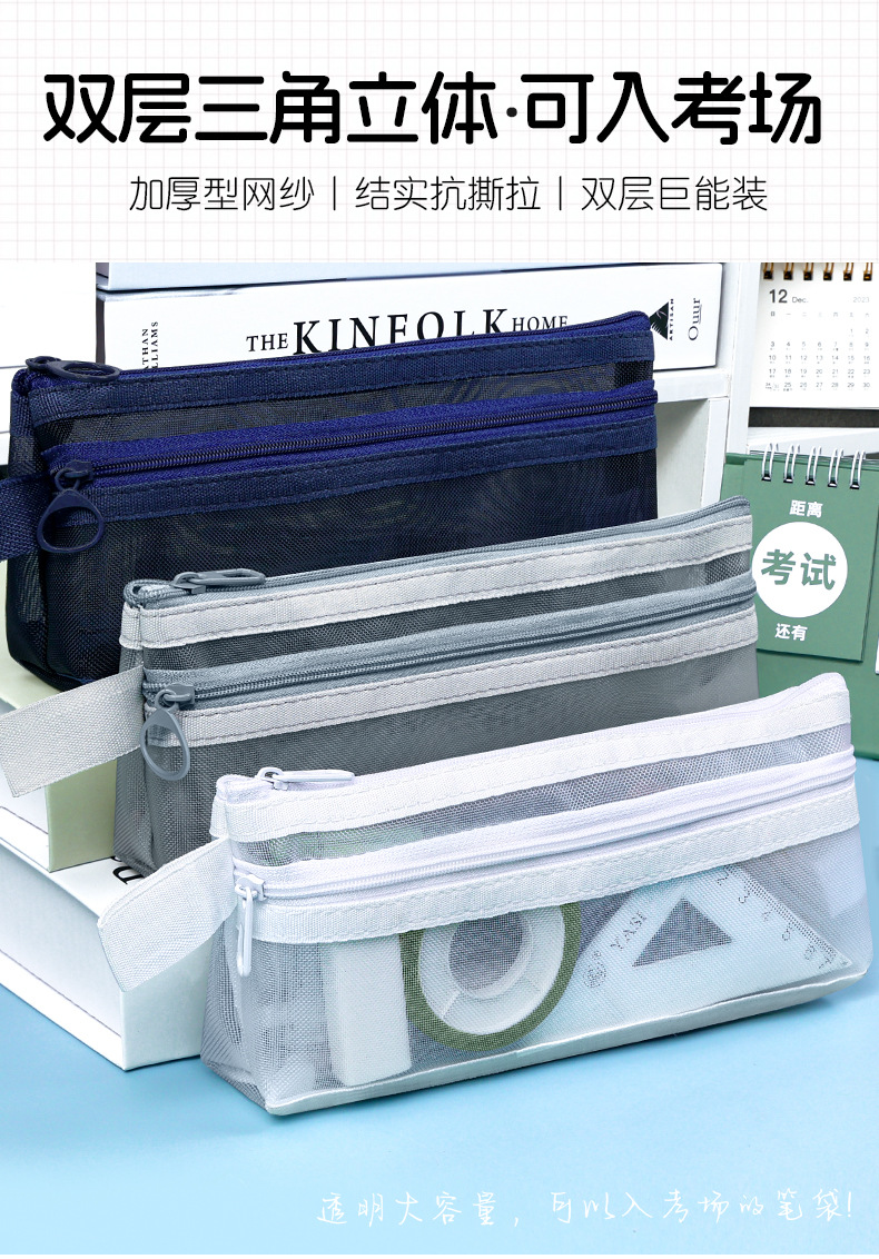 Huajie 투명 메쉬 연필 케이스 학생 문구 가방 시험 특별 연필 가방 저장 가방 문구 상자 연필 케이스