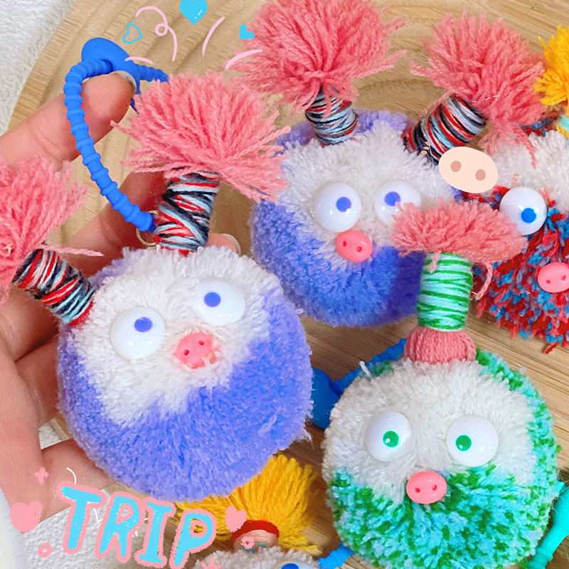 돼지 피그 테일 봉제 펜던트 튀긴 울 괴물 귀여운 키 체인 펜던트 인형 작은 선물 소녀의 심장 가방 장식품스토어 가기