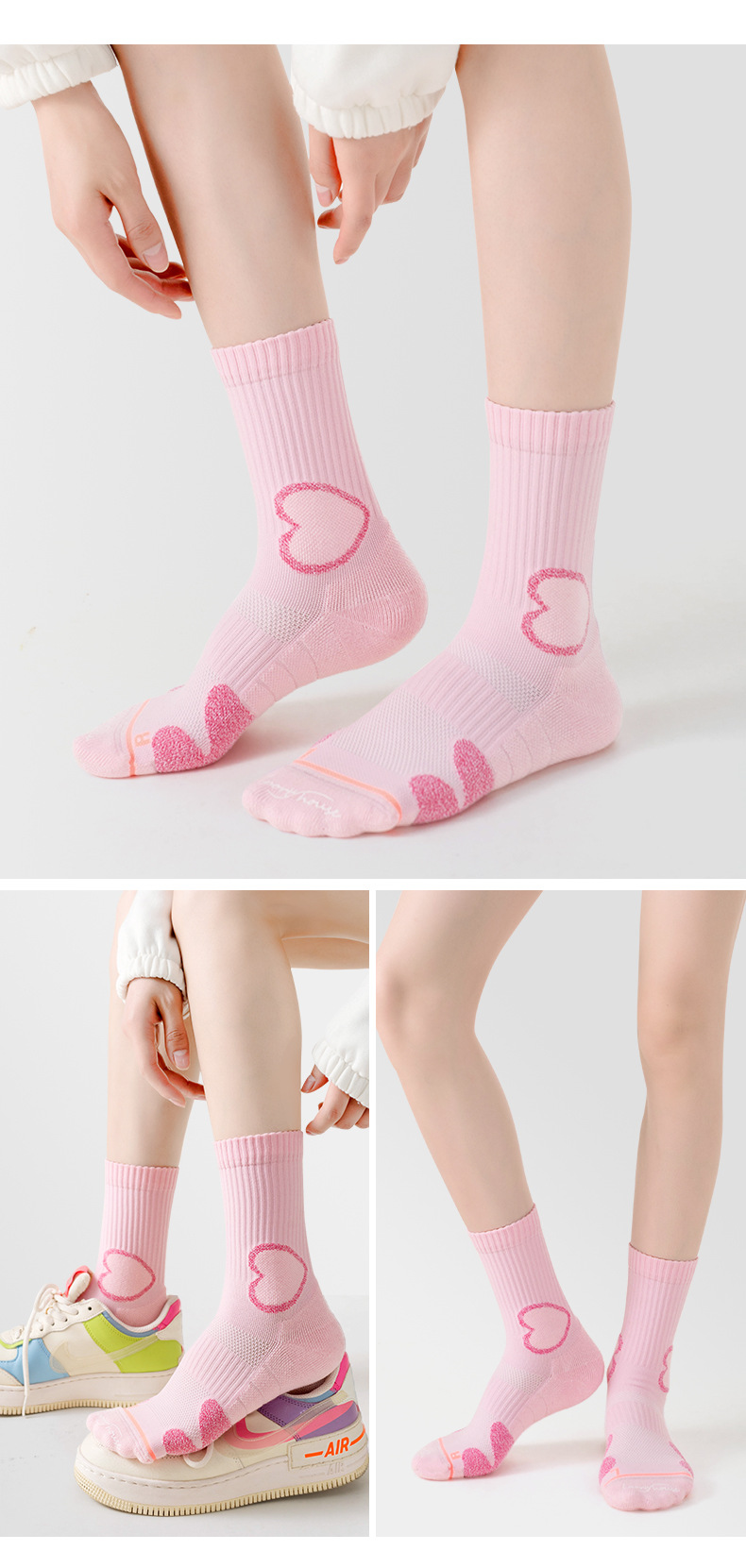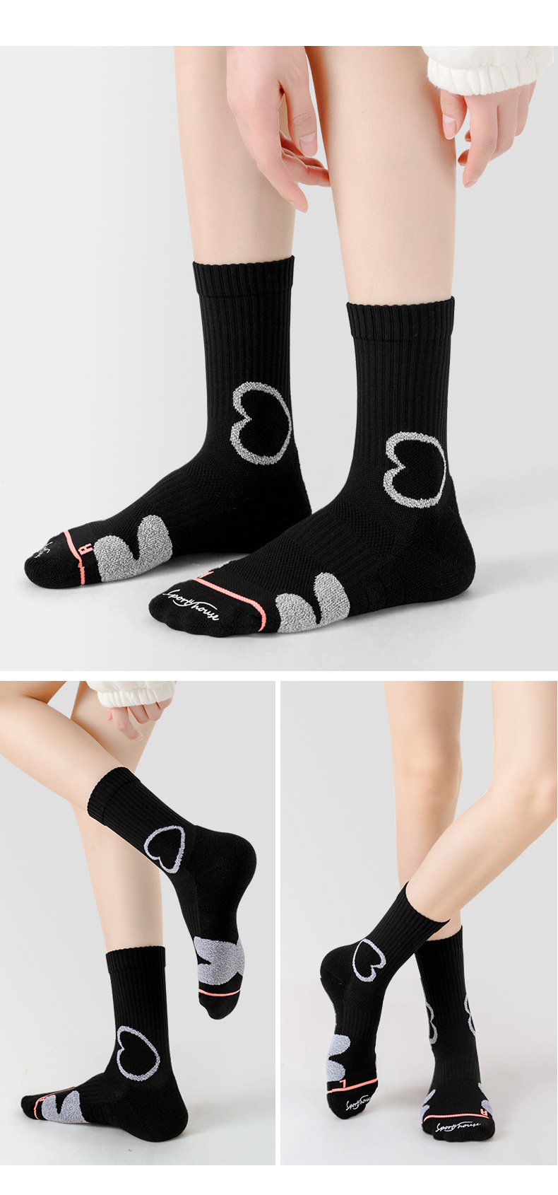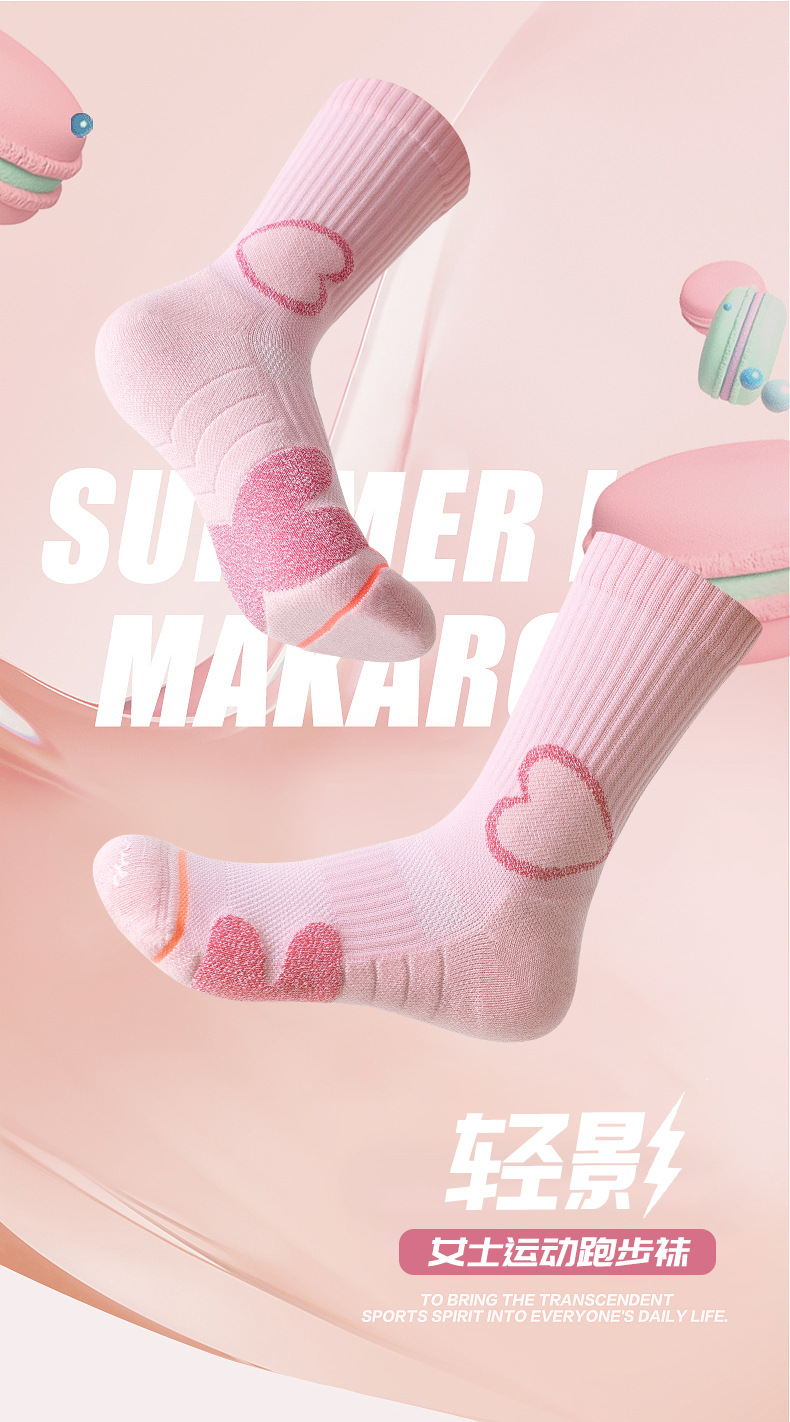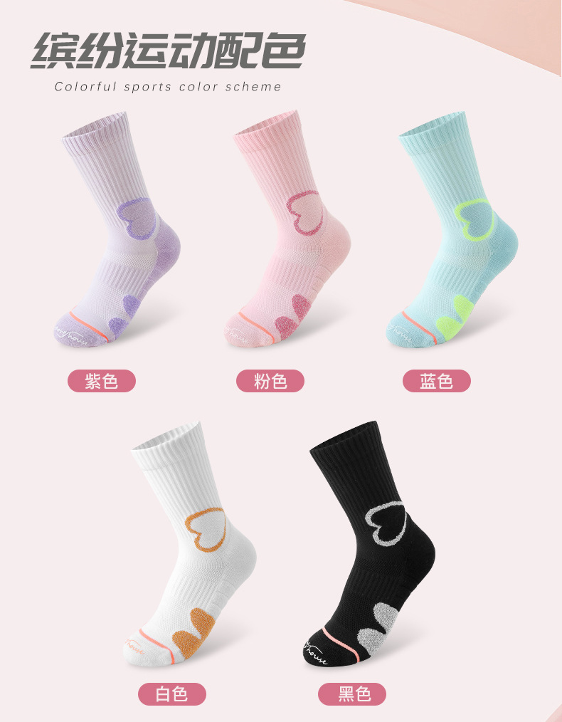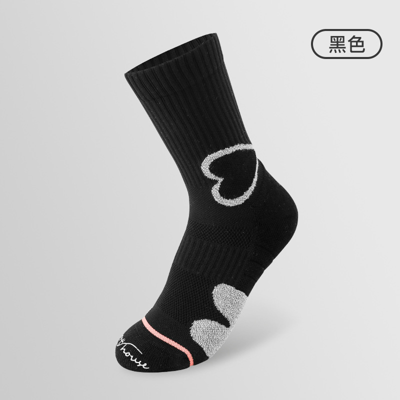 스포츠 하우스 스포츠 홈 여자 미드 배럴 봄과 여름 솔리드 컬러 러닝 양말 타월 바닥 프로 스포츠 양말