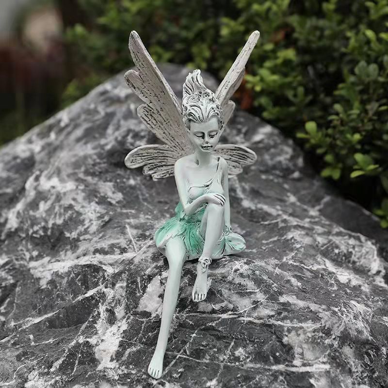 Dottulek 요정 동상 요정 정원 귀여운 천사 앉아 자세 홈 오피스 데스크탑 수지 장식품
