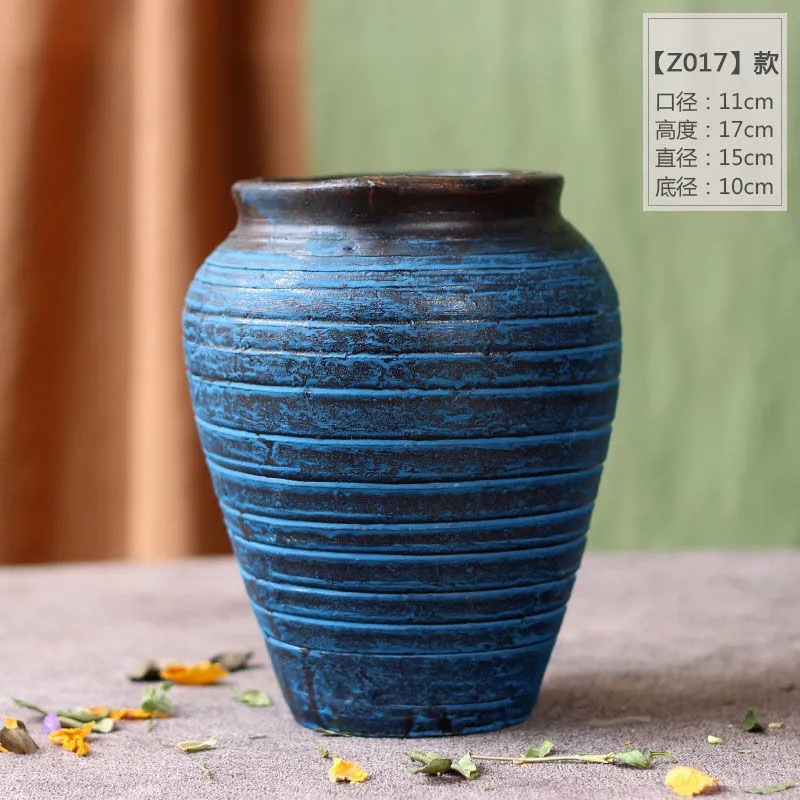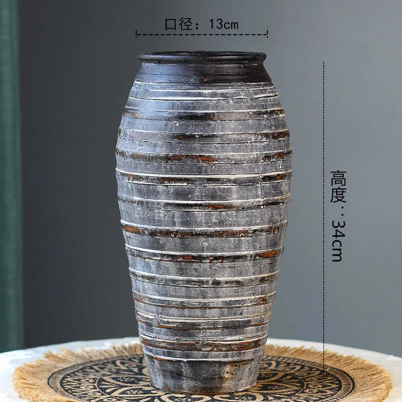 세라믹 꽃병 와비사비 스타일 말린 꽃 수제 복고풍 석기 꽃병 홈 호텔 B&B 골동품 꽃병