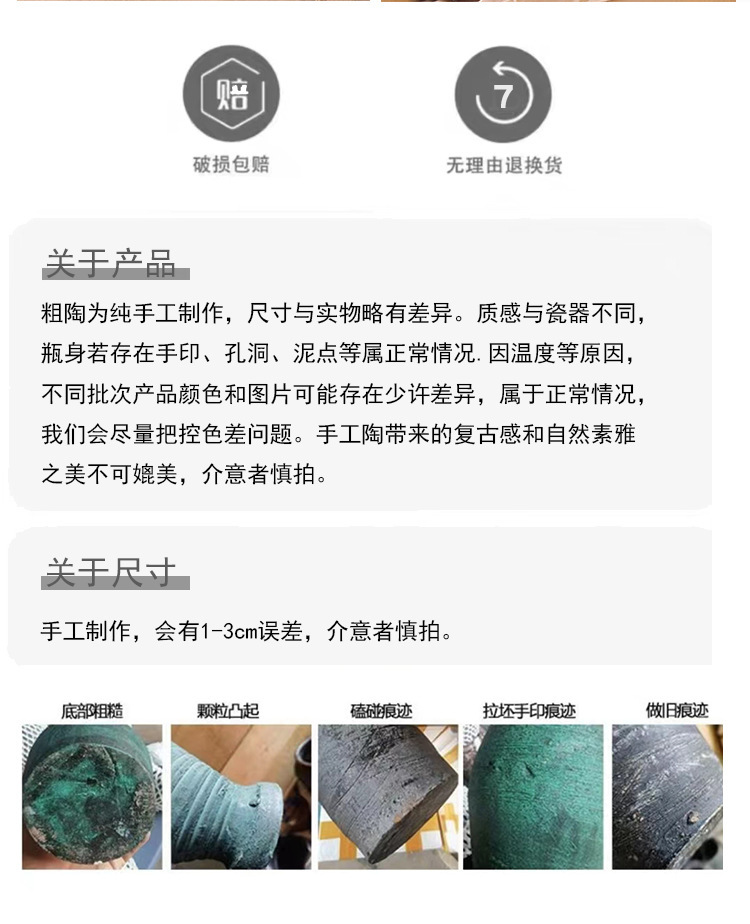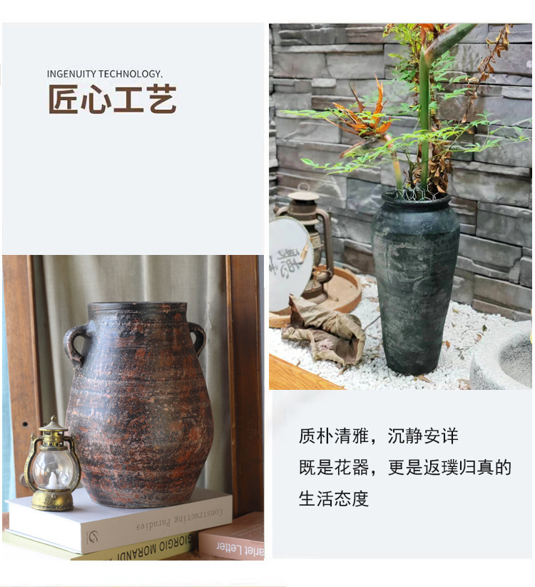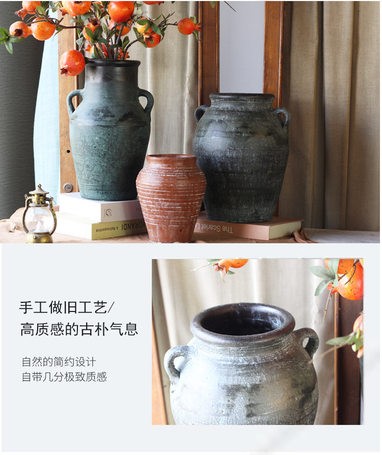세라믹 꽃병 와비사비 스타일 말린 꽃 수제 복고풍 석기 꽃병 홈 호텔 B&B 골동품 꽃병스토어 가기