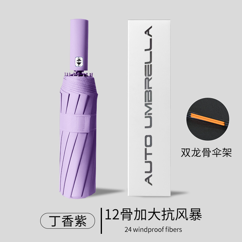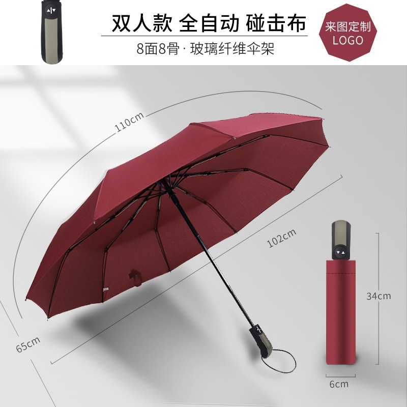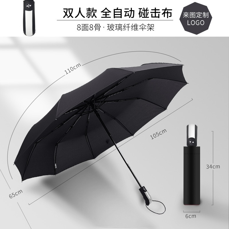 자동 우산 도매 12-뼈 더블 드래곤 뼈 블랙 접착제 비 이중 사용 우산 3 배 광고 로고 차양 선물 상자