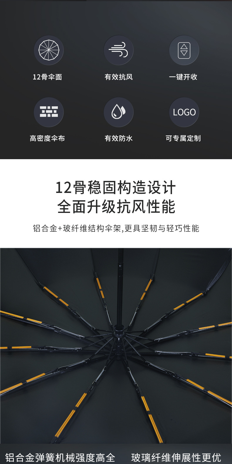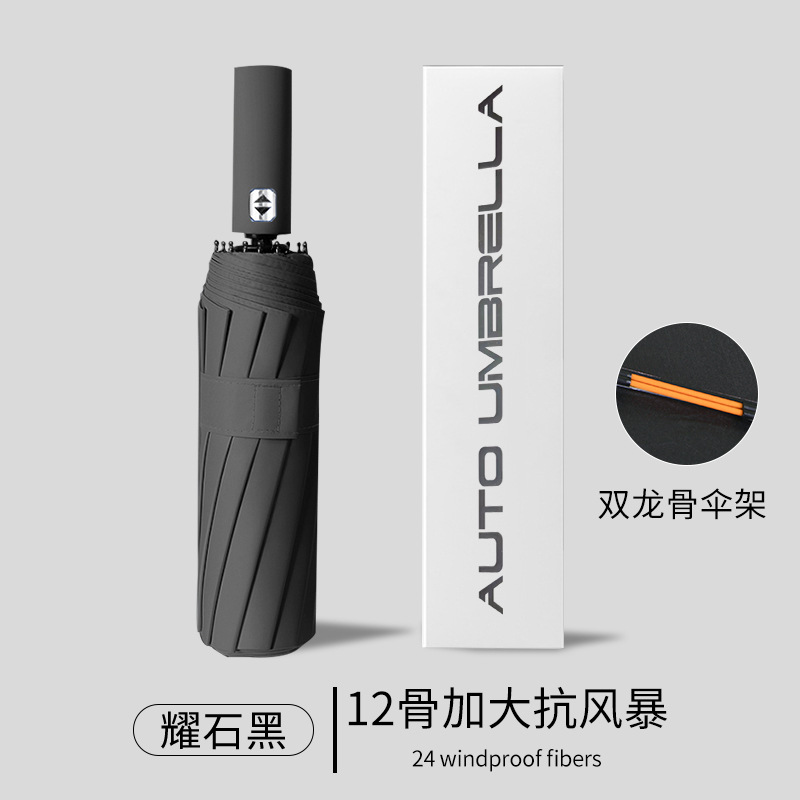 자동 우산 도매 12-뼈 더블 드래곤 뼈 블랙 접착제 비 이중 사용 우산 3 배 광고 로고 차양 선물 상자스토어 가기