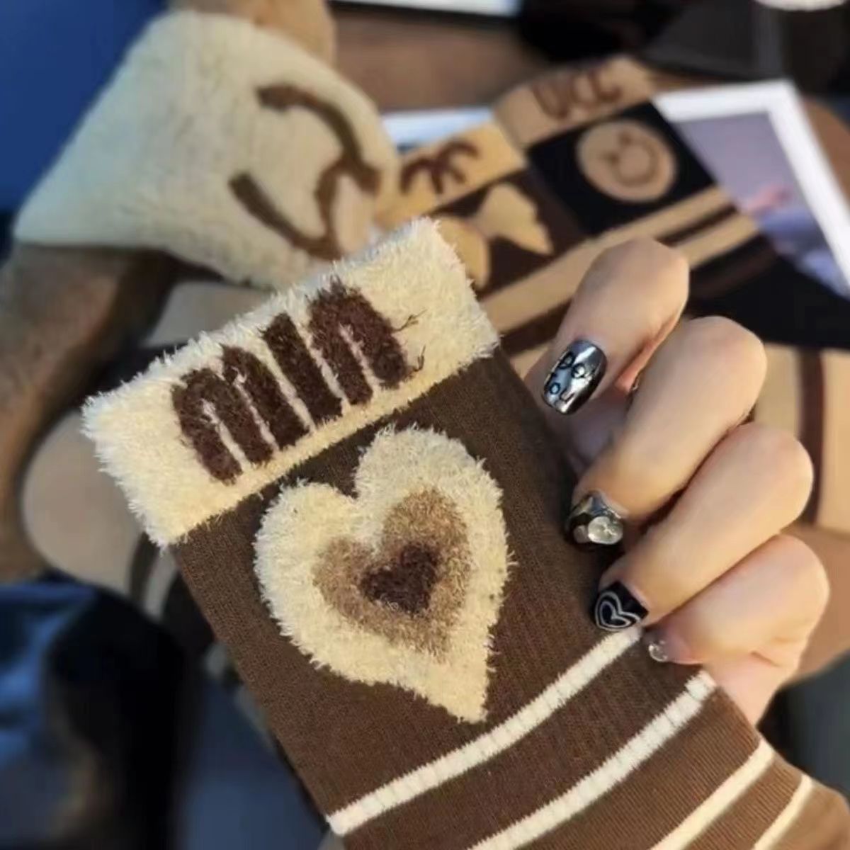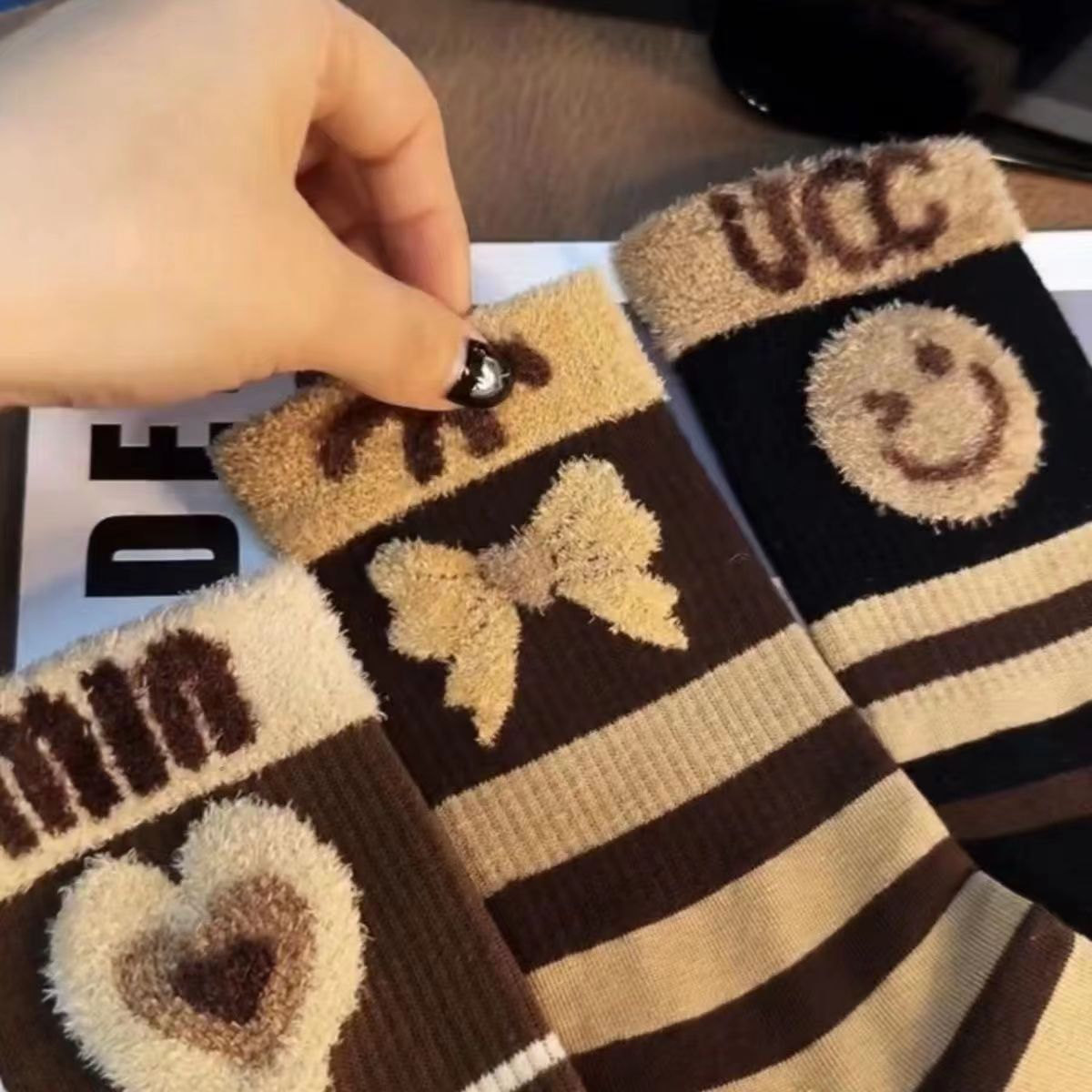 秋冬袜子女配鲨鱼裤长袜珊瑚绒羽毛纱毛茸茸美拉德字母熊头蝴蝶结