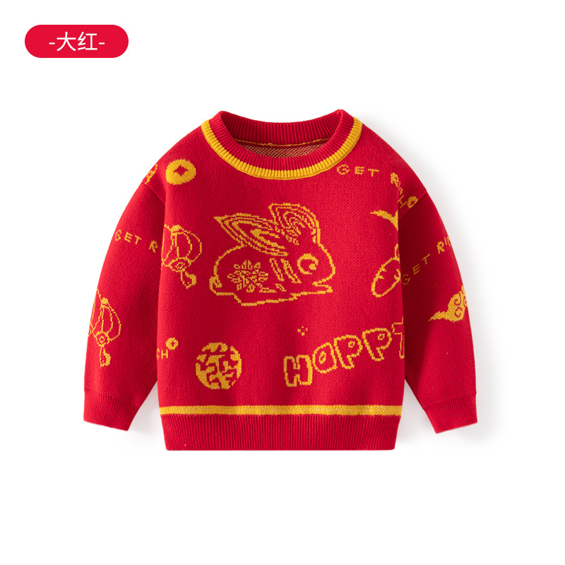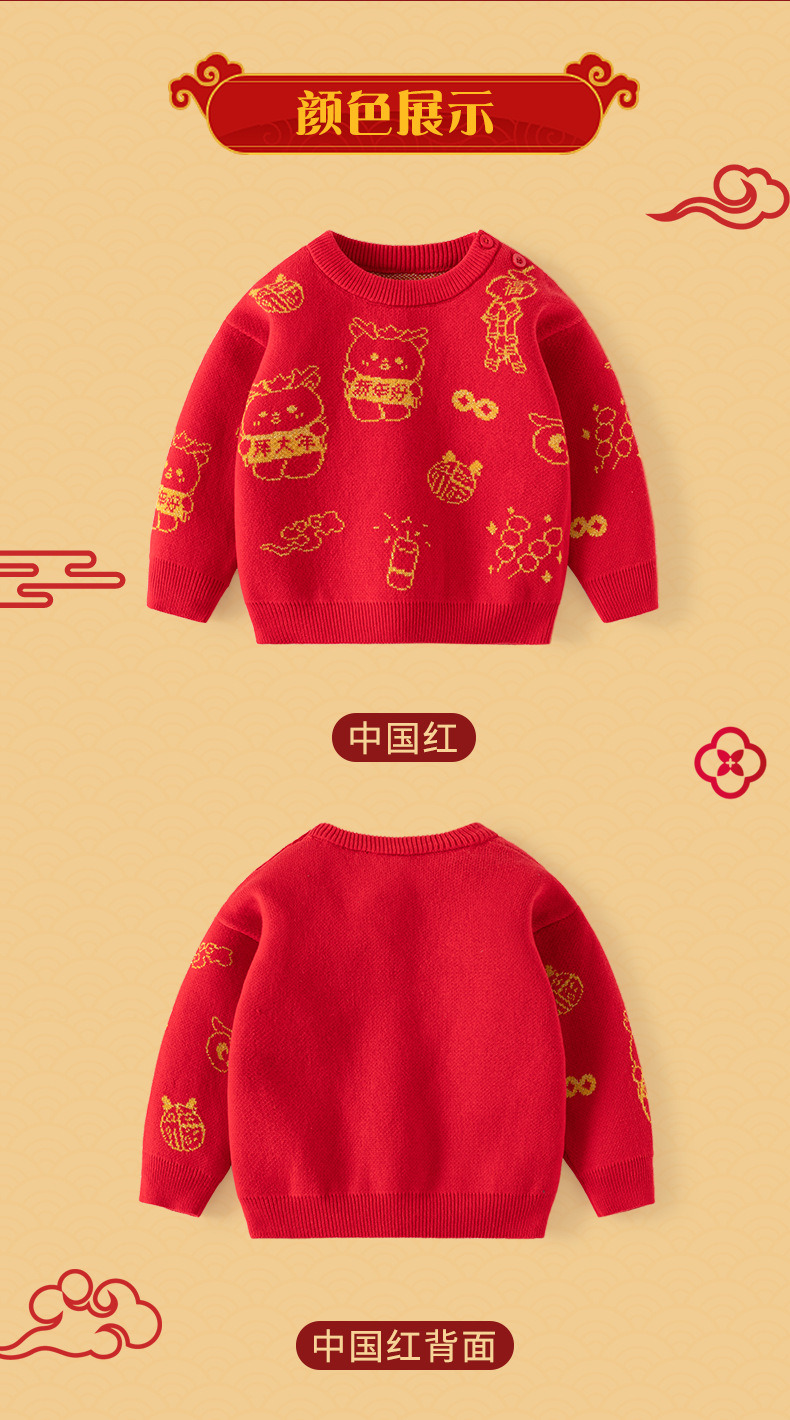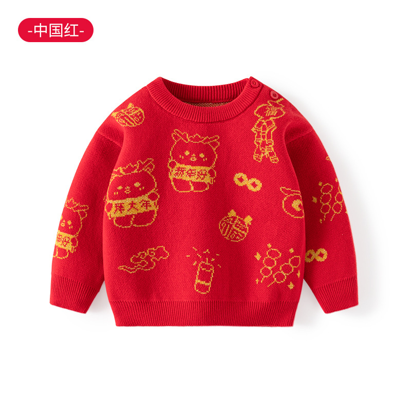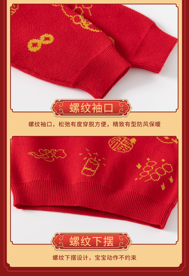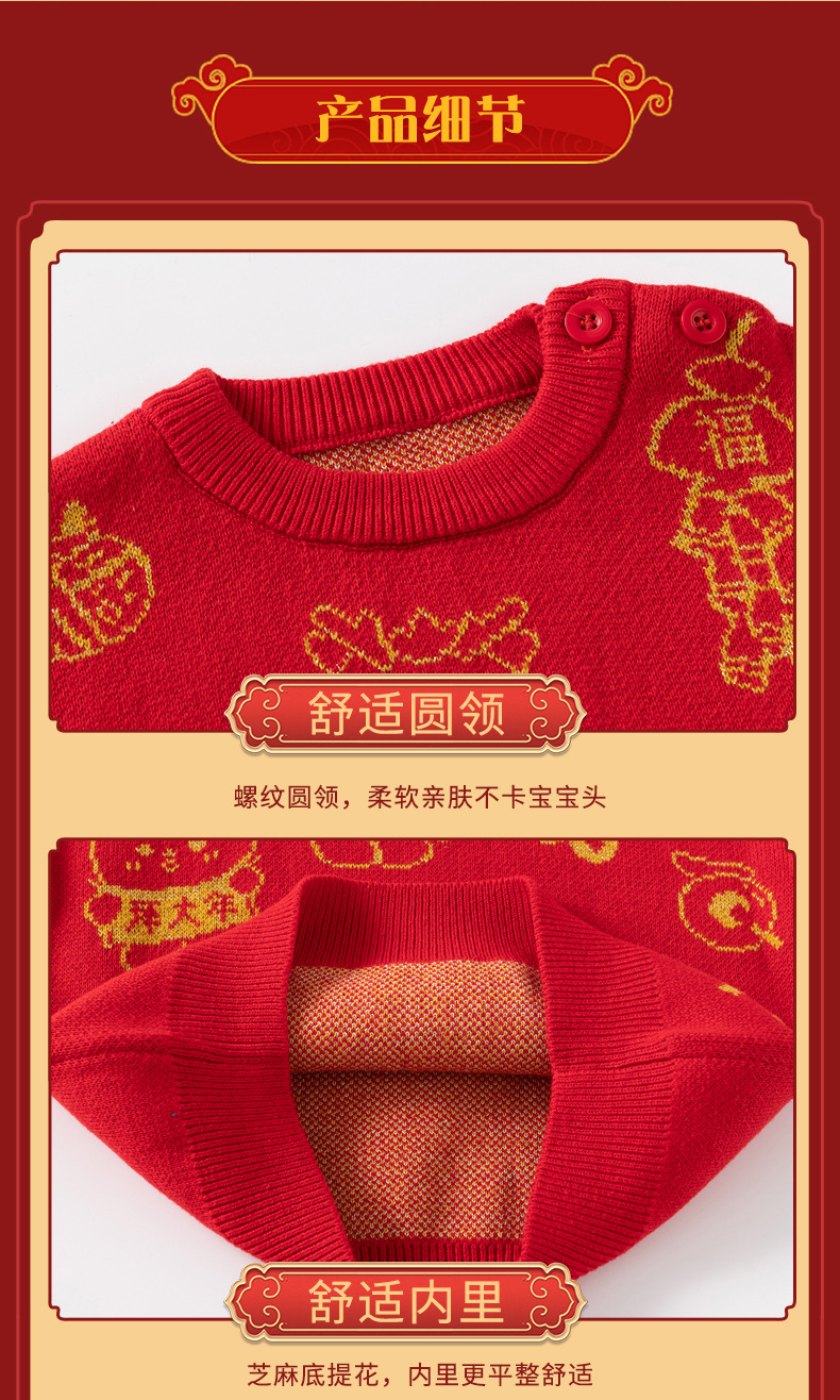 새해 복 많이 받으세요 가을 겨울 아동용 스웨터 A급 두꺼운 빨간색 아기 스웨터 중국풍 어린이 설날 의상