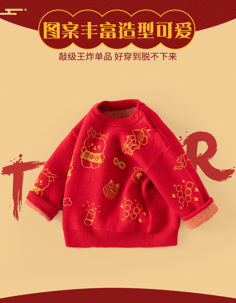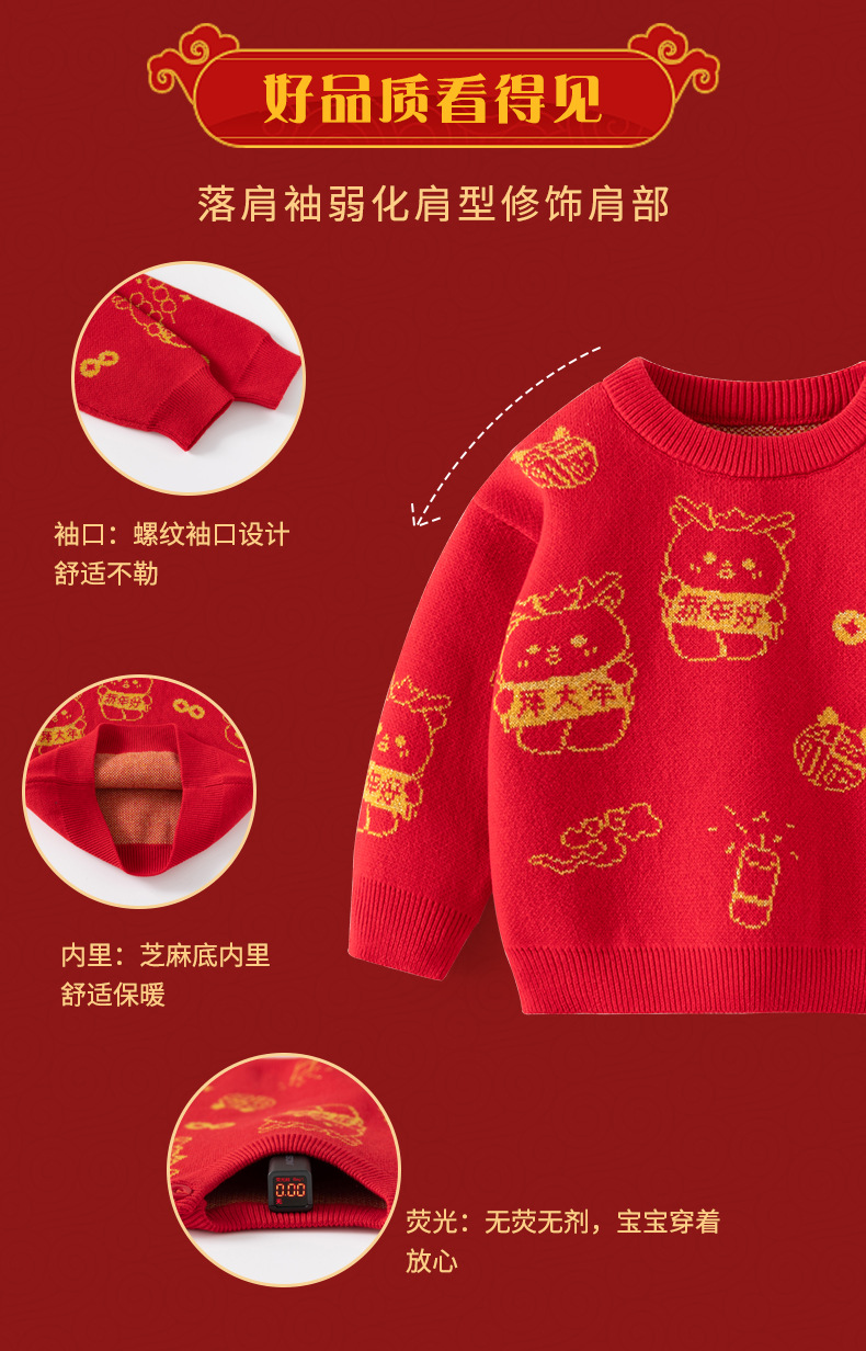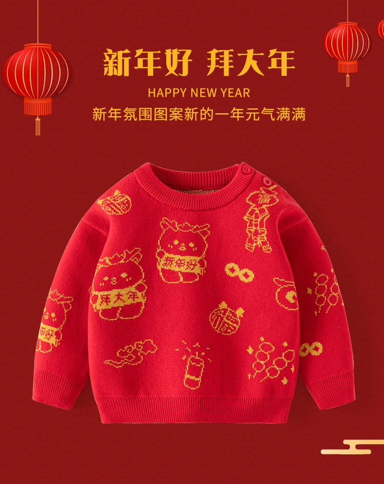 새해 복 많이 받으세요 가을 겨울 아동용 스웨터 A급 두꺼운 빨간색 아기 스웨터 중국풍 어린이 설날 의상스토어 가기