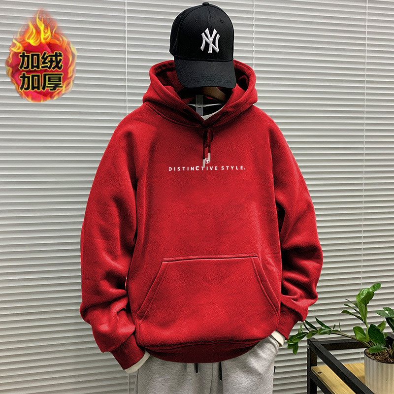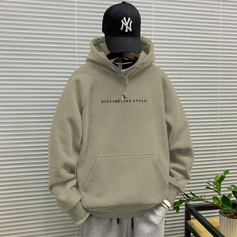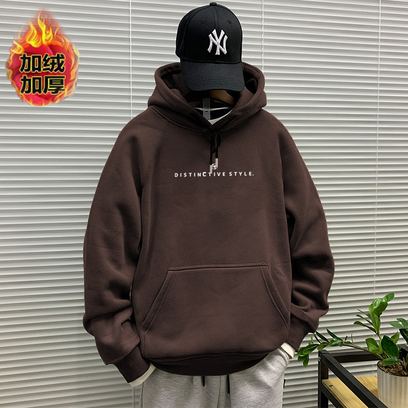 가을과 겨울 트렌디 브랜드 남성용 후드 재킷 심플 탑 느슨한 무거운 기모 두꺼운 후드