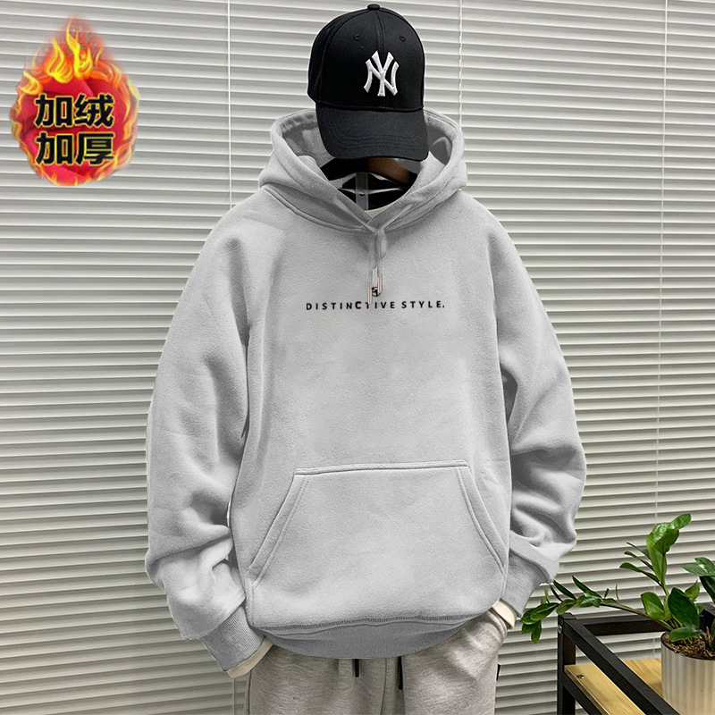 가을과 겨울 트렌디 브랜드 남성용 후드 재킷 심플 탑 느슨한 무거운 기모 두꺼운 후드스토어 가기