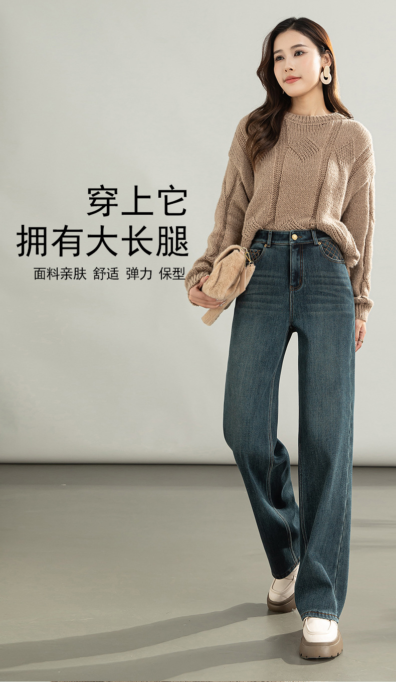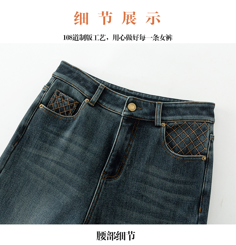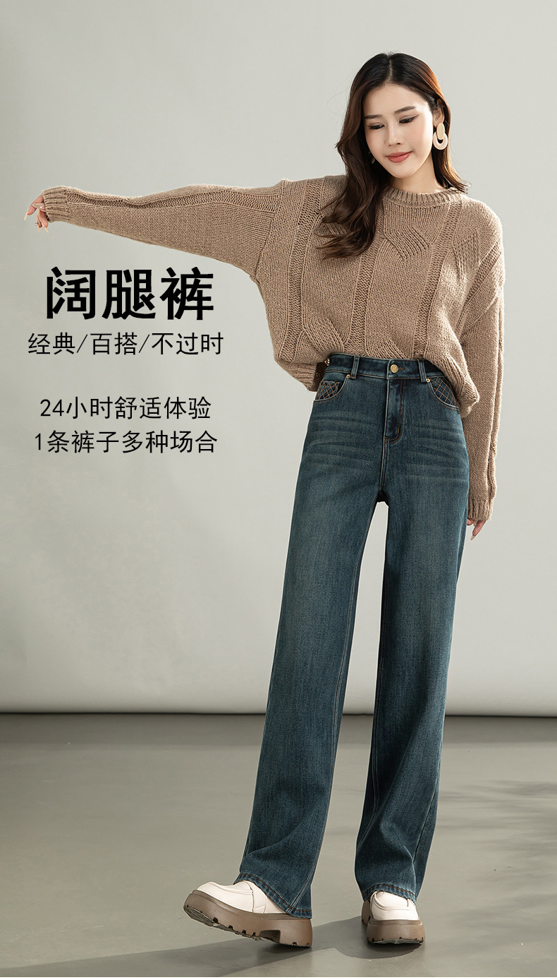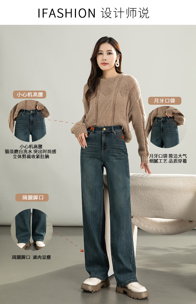 2023 겨울 새로운 자수 복고풍 청바지 여성의 한국식 하이 허리 복합 벨벳은 향수를 불러 일으키는 넓은 다리 바지 8061스토어 가기