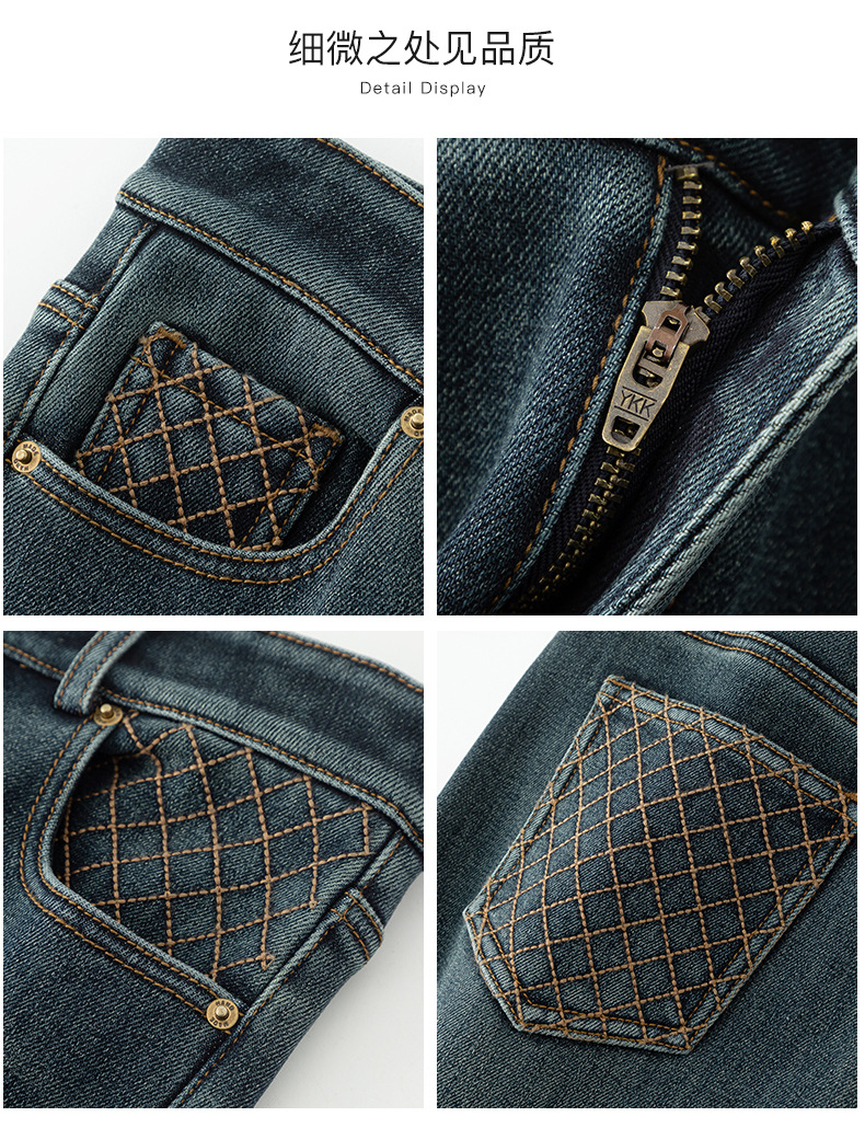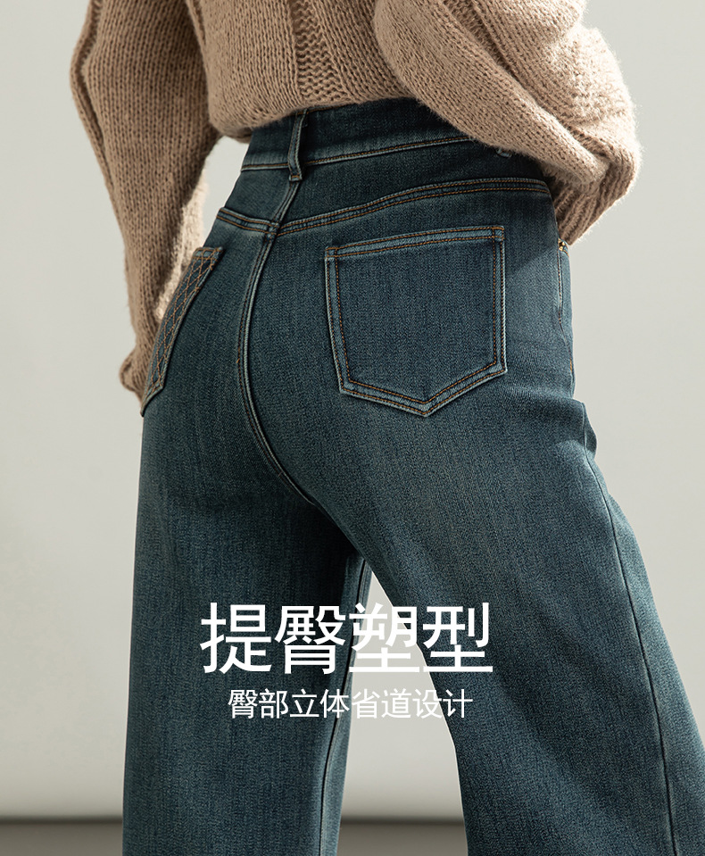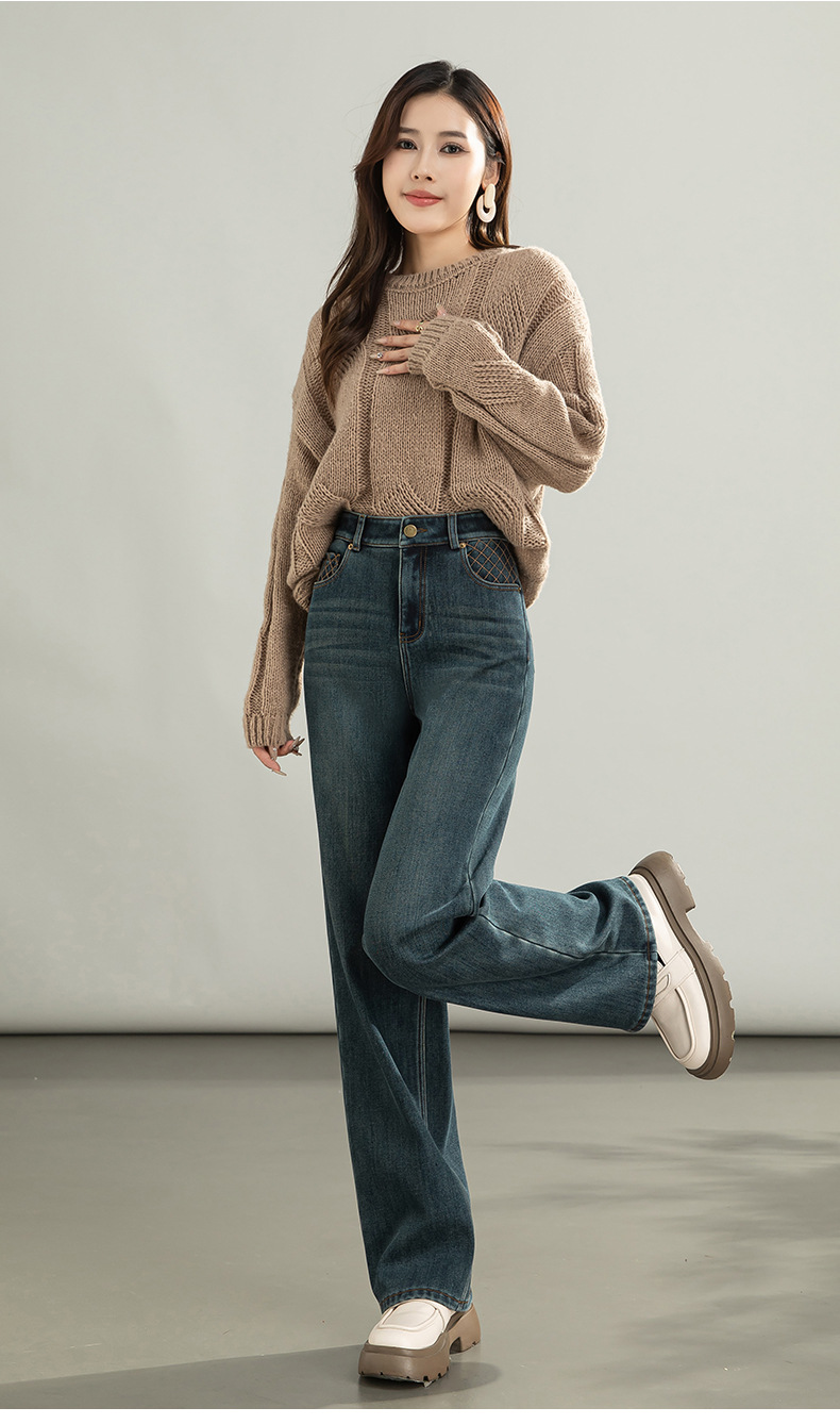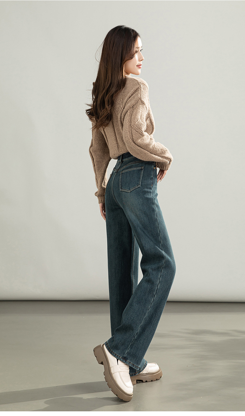 2023 겨울 새로운 자수 복고풍 청바지 여성의 한국식 하이 허리 복합 벨벳은 향수를 불러 일으키는 넓은 다리 바지 8061스토어 가기