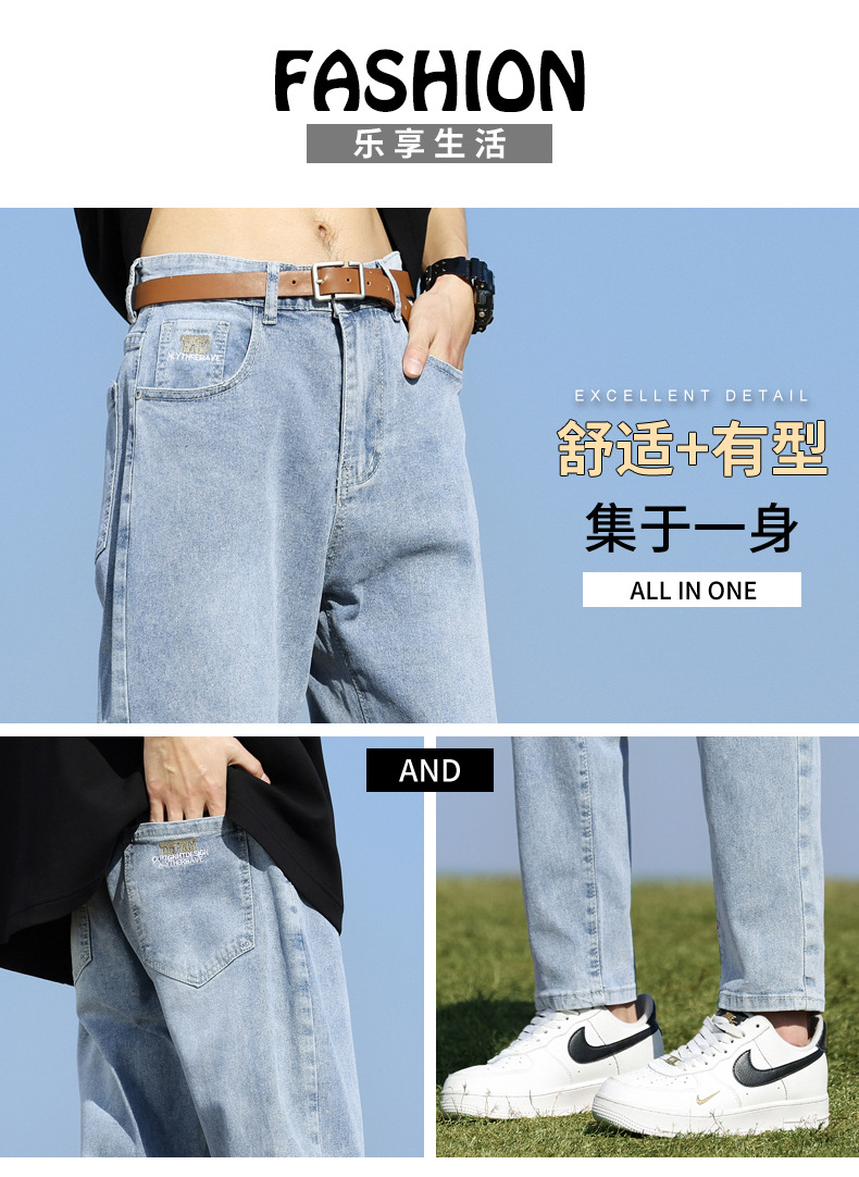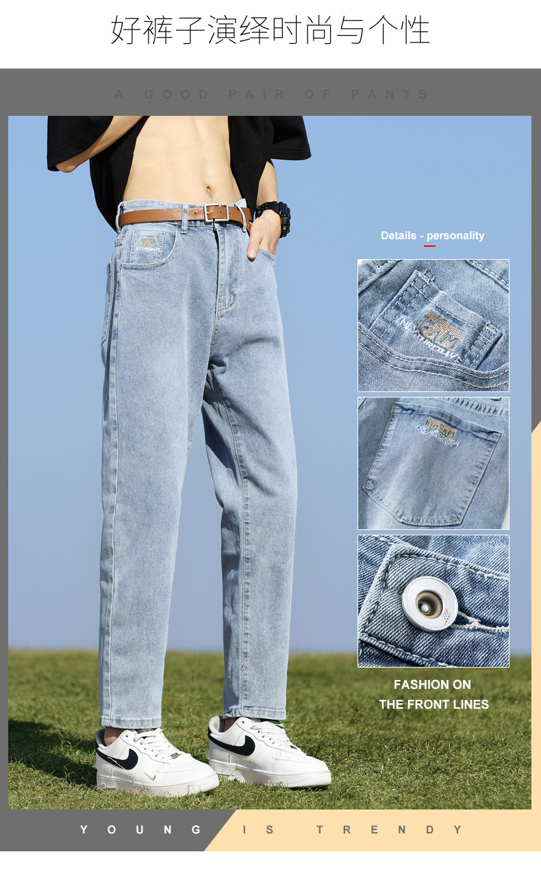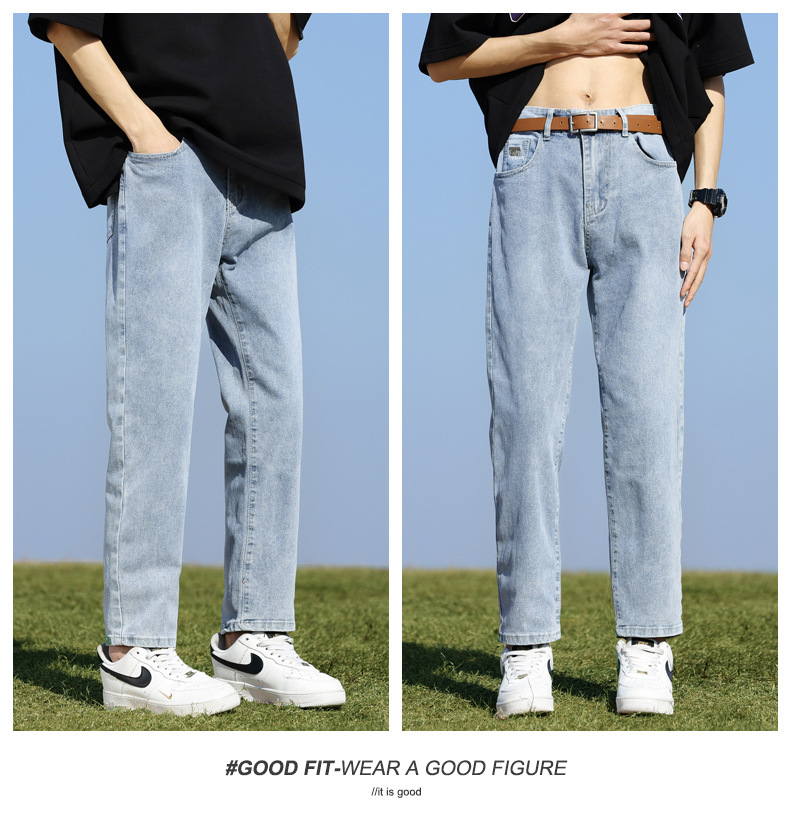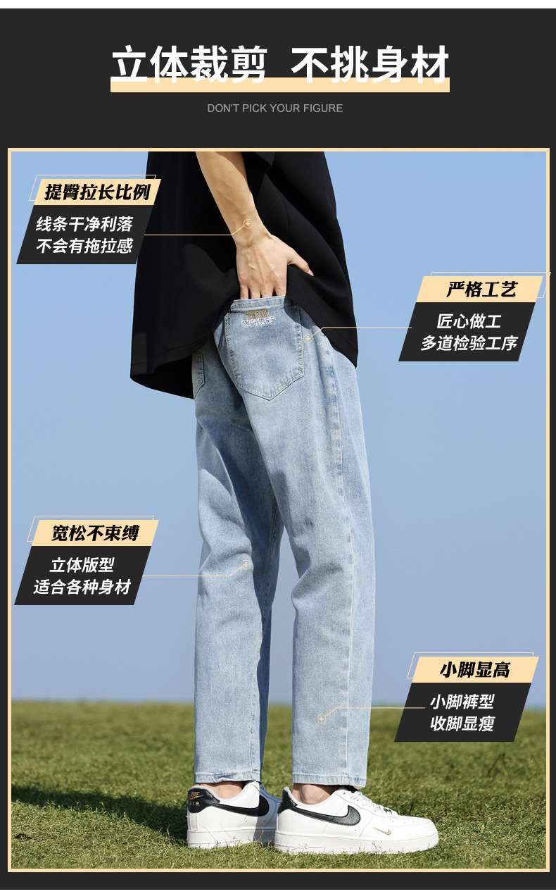 Four Seasons Jeans 남성용 자른 슬림 핏 스트레이트 팬츠 남성용 패셔너블 올 매치 루즈 캐주얼 팬츠스토어 가기