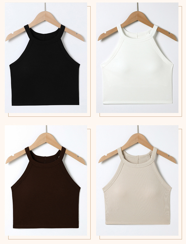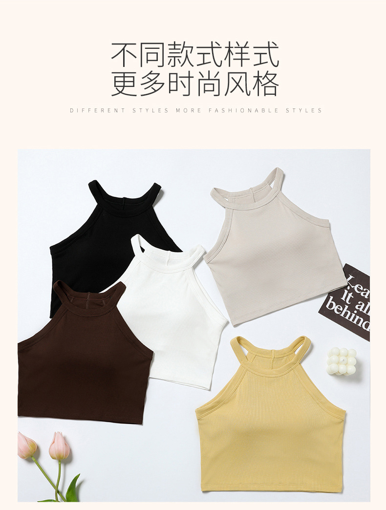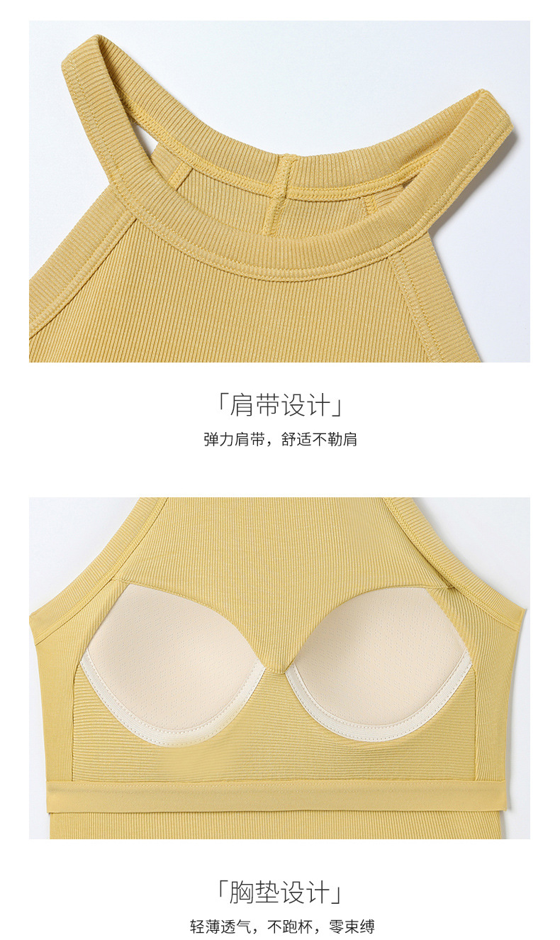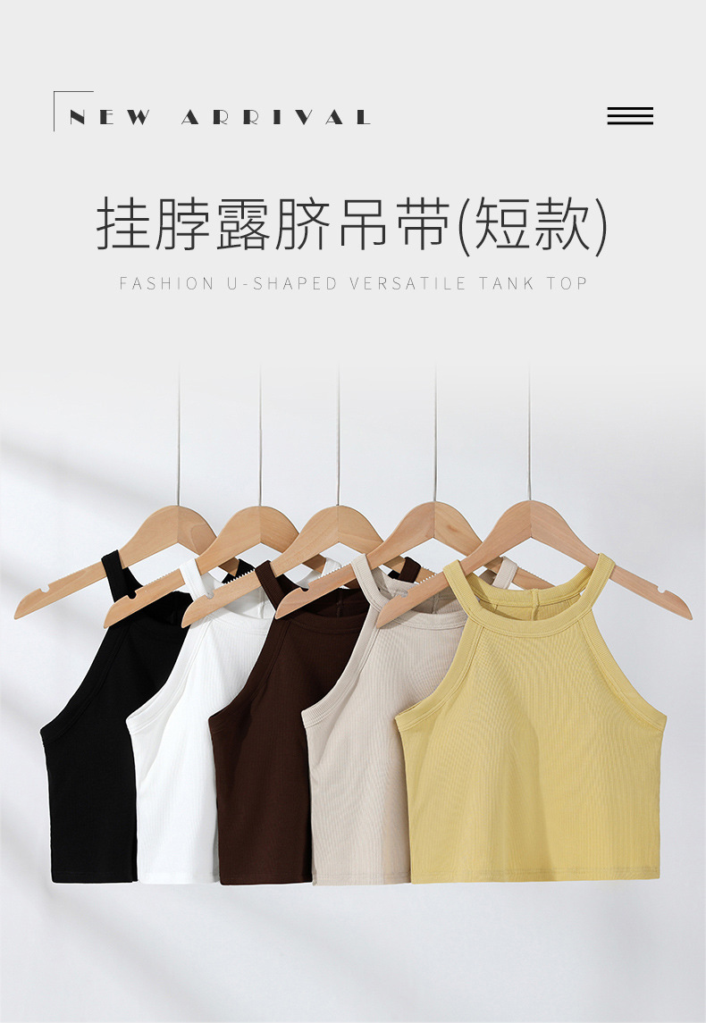 배꼽 노출 스타일의 민소매 탑, 솔리드 컬러 이너웨어, 아름다운 등 라인, 가슴 패드 내장 일체형 솔리드 컬러 민소매 탑