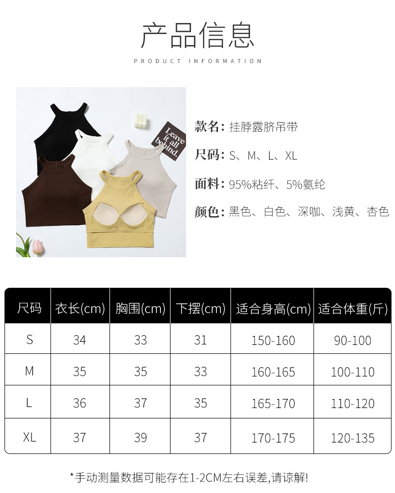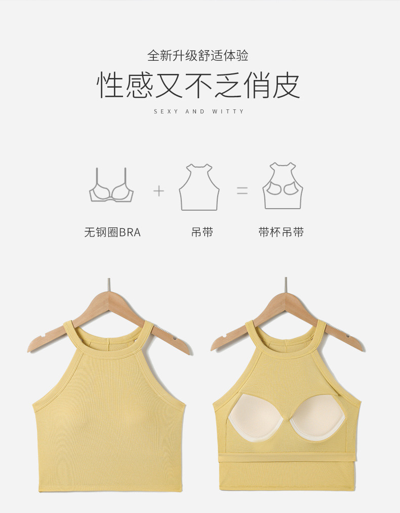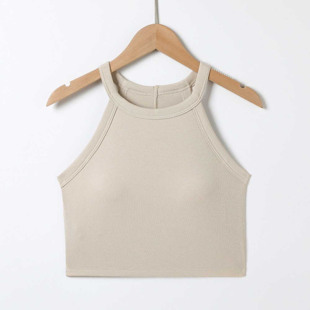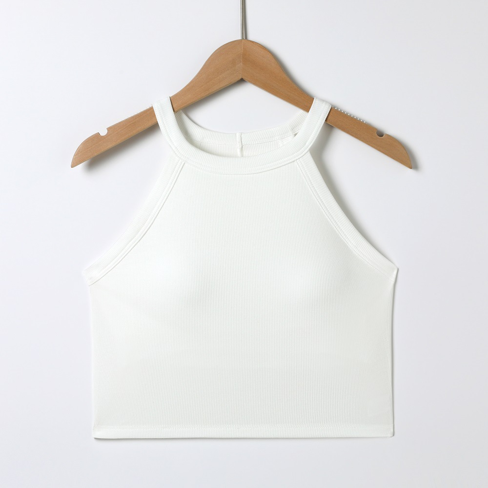 배꼽 노출 스타일의 민소매 탑, 솔리드 컬러 이너웨어, 아름다운 등 라인, 가슴 패드 내장 일체형 솔리드 컬러 민소매 탑
