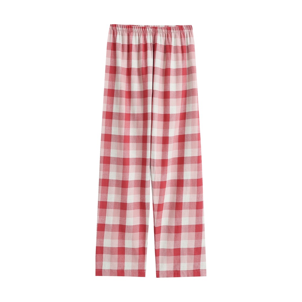 • (여성) 더블 스트랜드 플란넬 복숭아 핑크 격자 무늬 싱글 바지