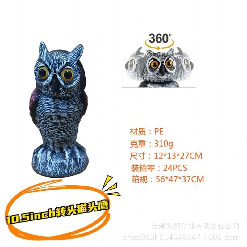 10.5 인치 가짜 올빼미 미끼 동상 360 ° 회전 헤드 플라스틱 올빼미 마우스 구충제 농장 새 방충제