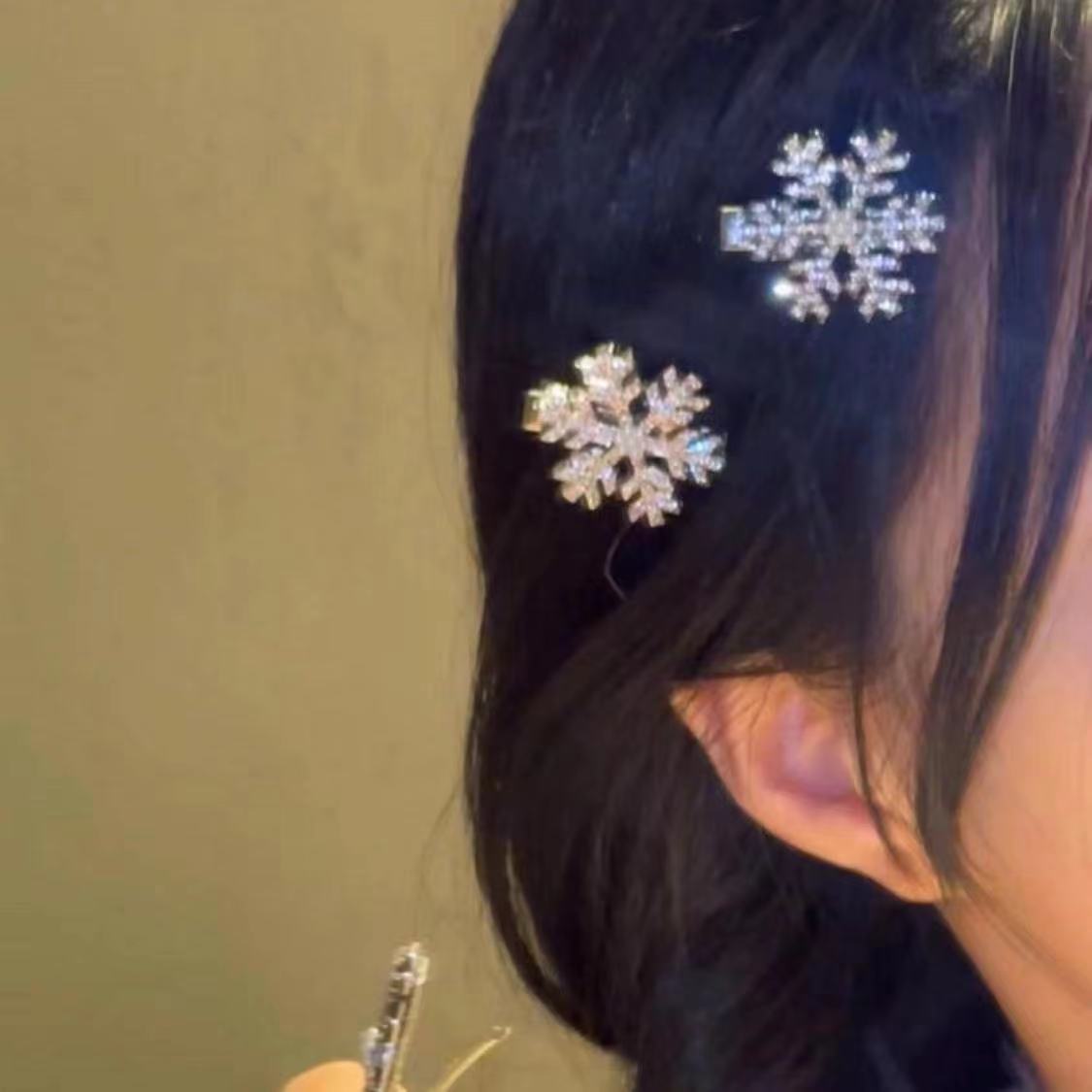 겨울 눈송이 모조 다이아몬드 머리핀 여성의 새로운 귀여운 가을과 겨울 깨진 머리 앞머리 금속 BB 클립 새해 머리핀 머리 장식스토어 가기