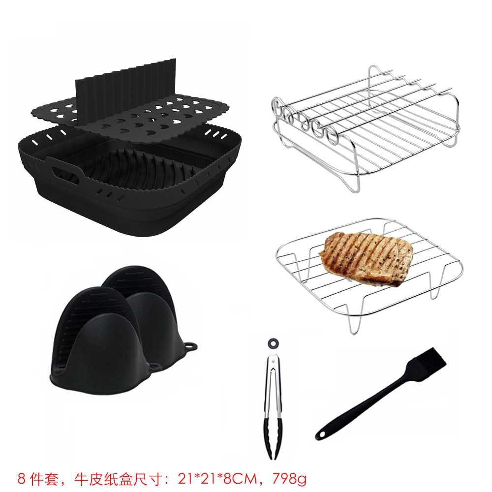 【产品净重】:方形烤架:174g (含5根针); 方形蒸架 76g;方形烤盘:187g;方形分隔:87g; 两个手夹:86g;油刷 40g; 食物夹 66g; 牛皮纸盒:80g.
