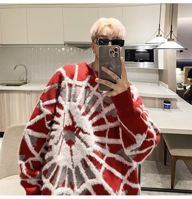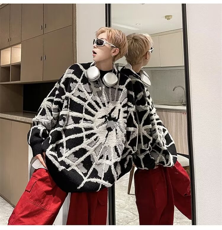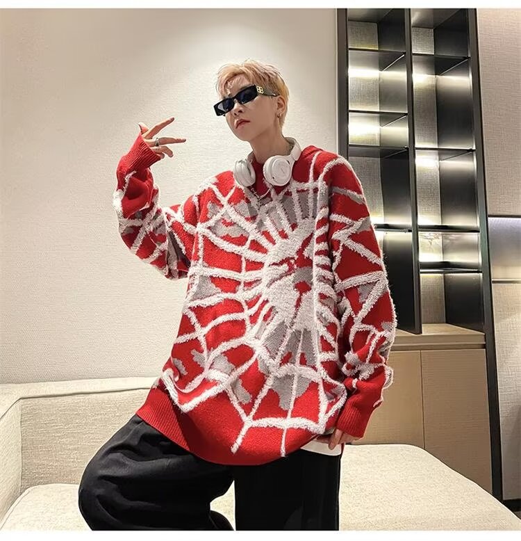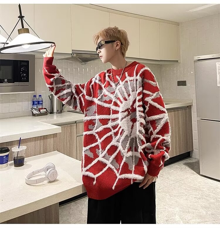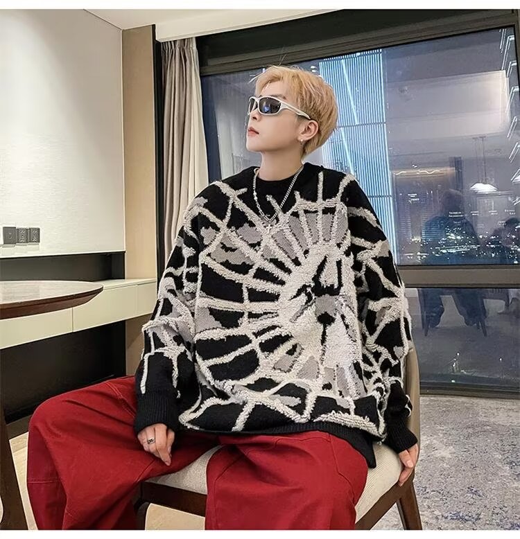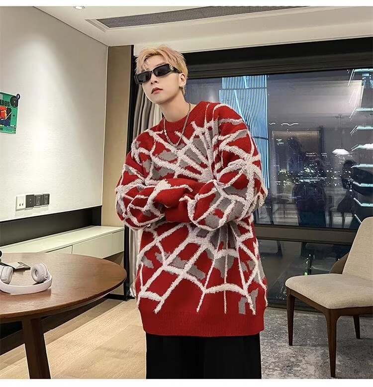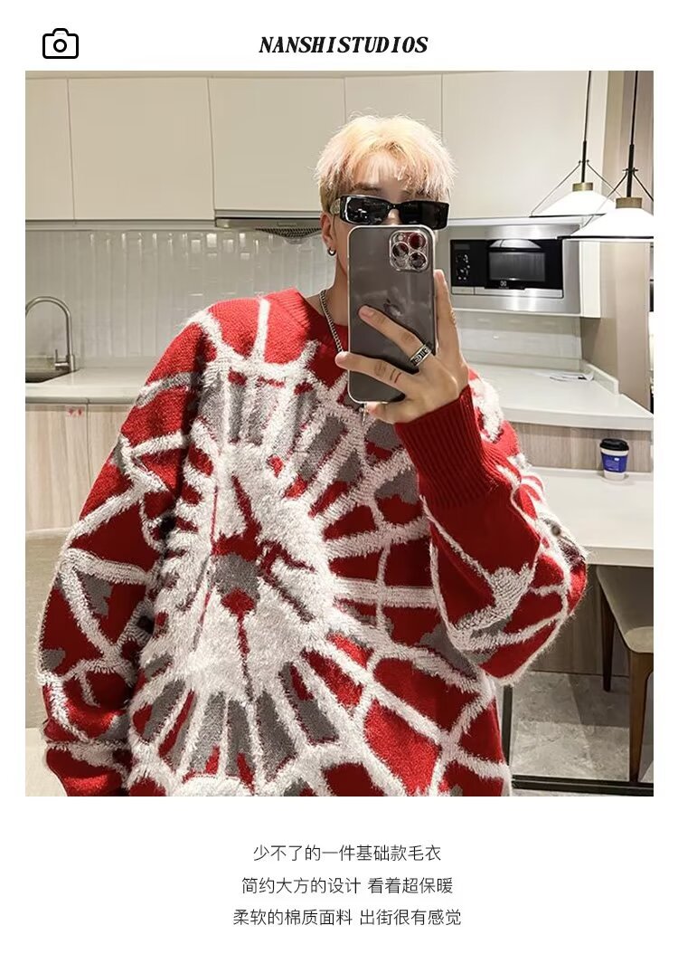 스웨터 남자의 가을과 겨울 새로운 미국 스타일의 하이 스트리트 강아지 핸즈섬 스파이더 자카드 백 스타일 느슨한 풀오버 니트 스웨터 스웨터스토어 가기