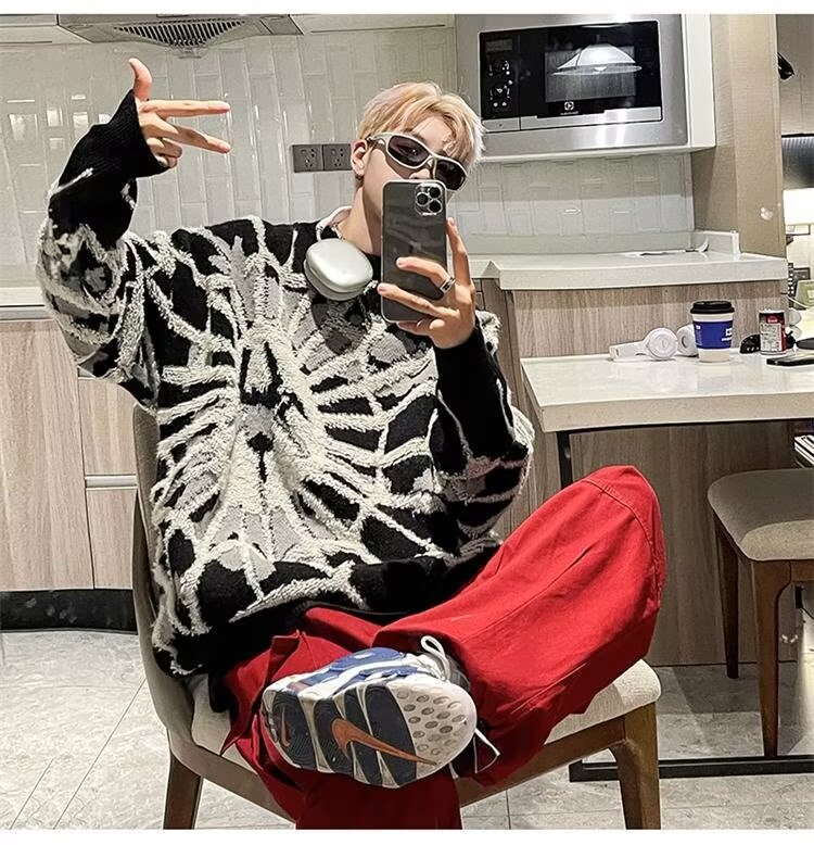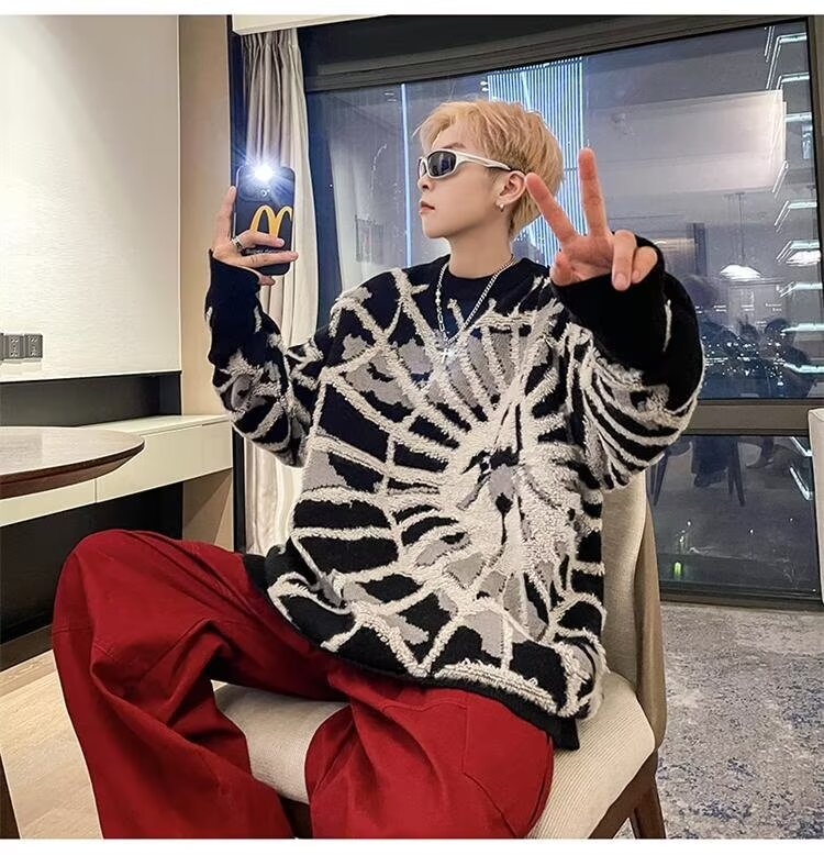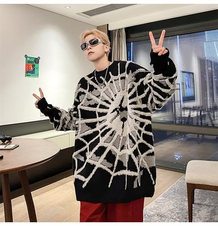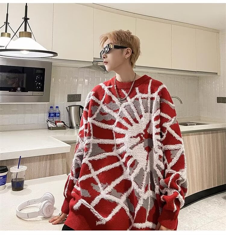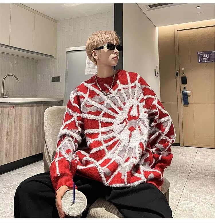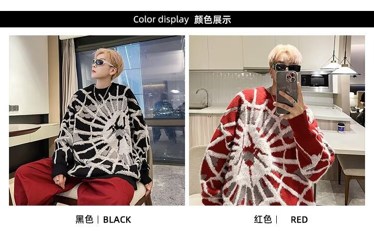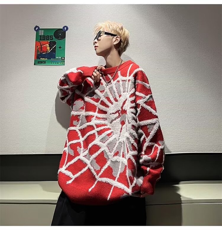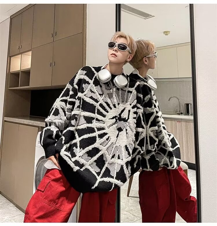 스웨터 남자의 가을과 겨울 새로운 미국 스타일의 하이 스트리트 강아지 핸즈섬 스파이더 자카드 백 스타일 느슨한 풀오버 니트 스웨터 스웨터스토어 가기