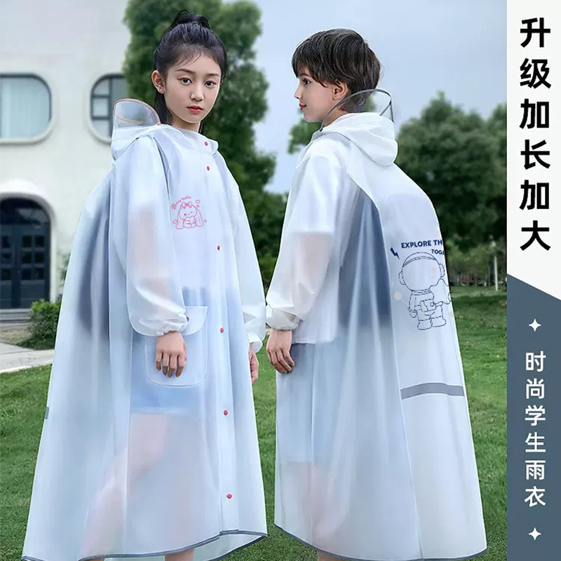 중년 및 큰 아이들을위한 책가방과 함께 학교를위한 어린이 비옷 소년 소녀 학생 판초 긴 전신 방비