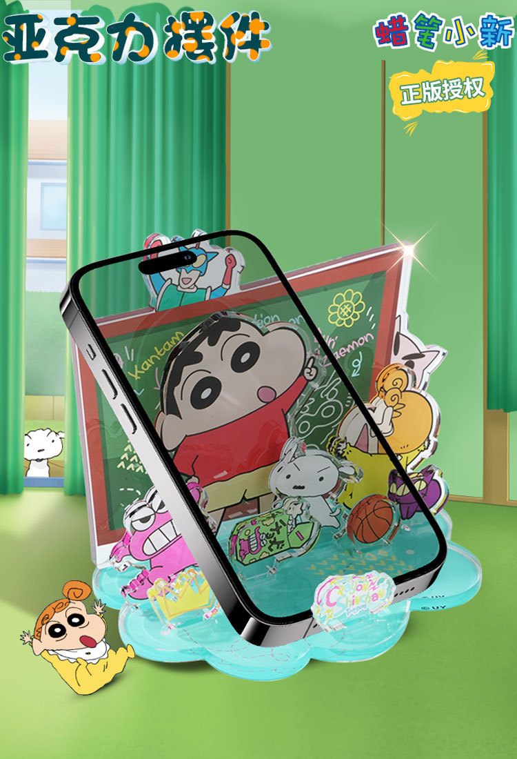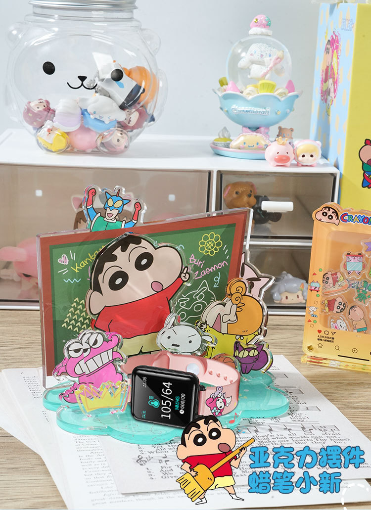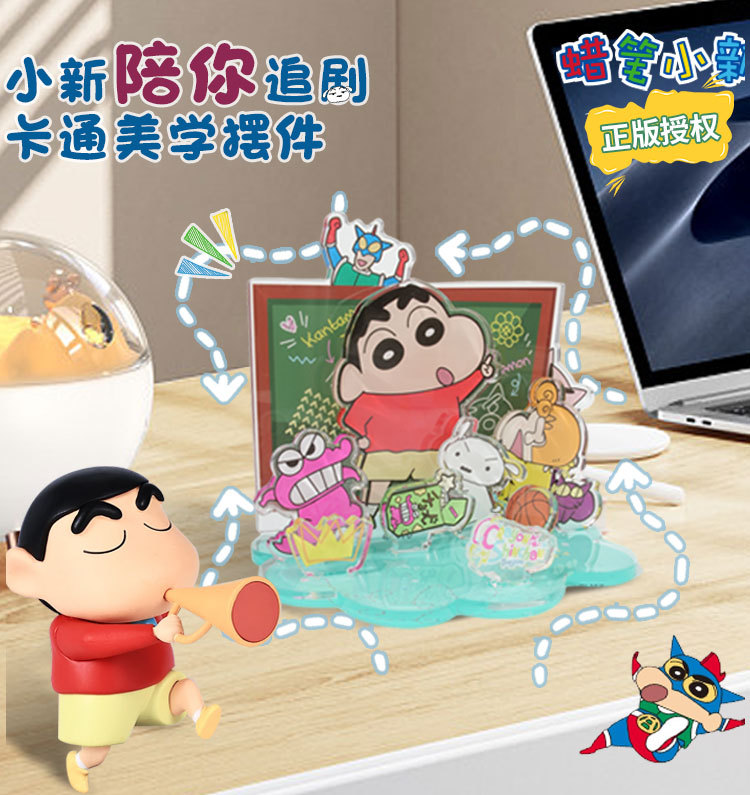 Jianong 새로운 스타일 크레용 Xiaoxin 게임 시간 장식 스탠딩 브랜드 인 스타일 귀여운 아크릴 3 차원 데스크탑 장식