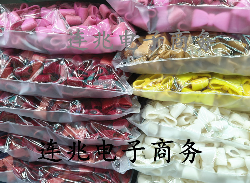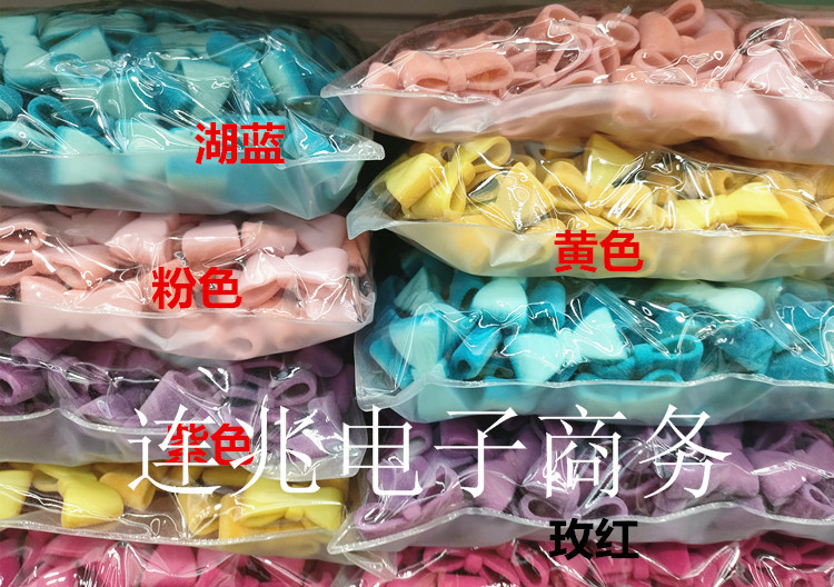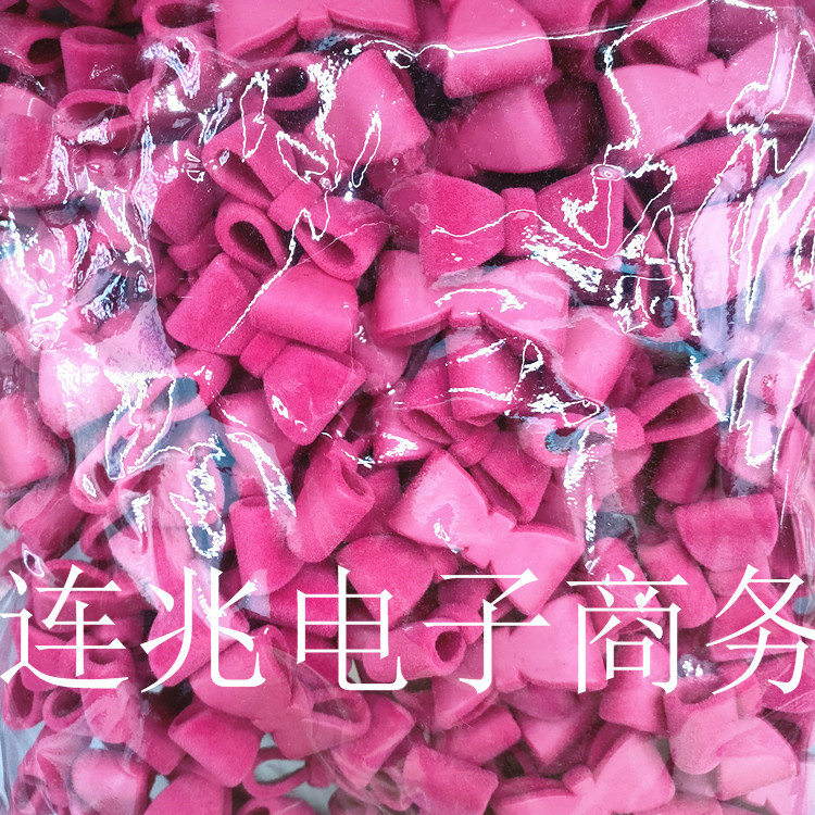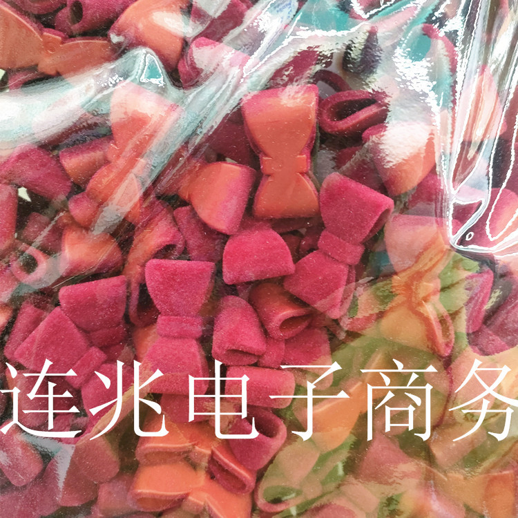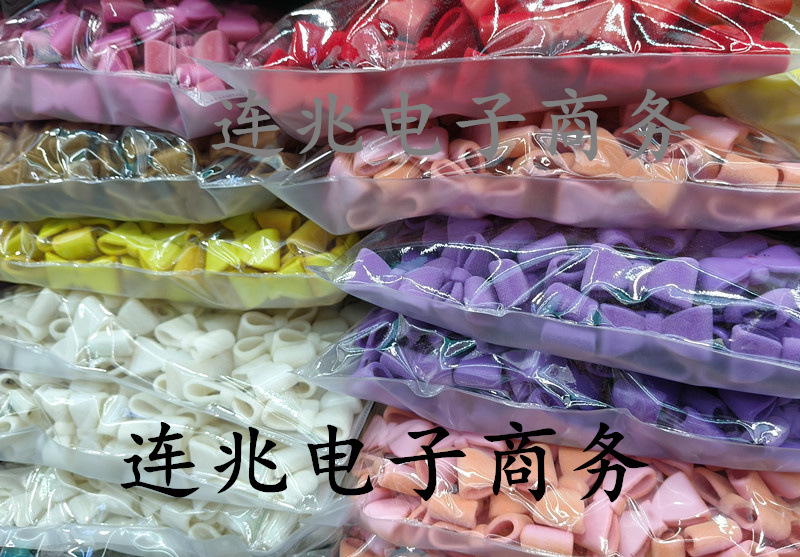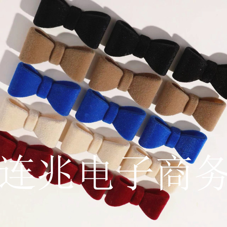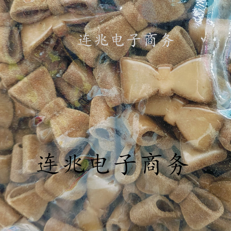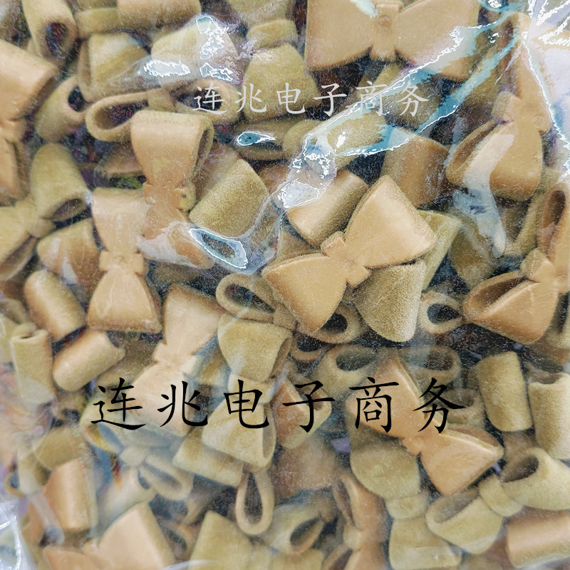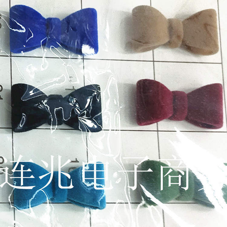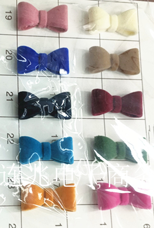 植绒蝴蝶结正面植绒,背面没有植绒,半面贴片,皮筋发绳,手机壳配件,尺寸约32MM,一包200个,有现货可以很快发货,没有定做单款单色要几千起
