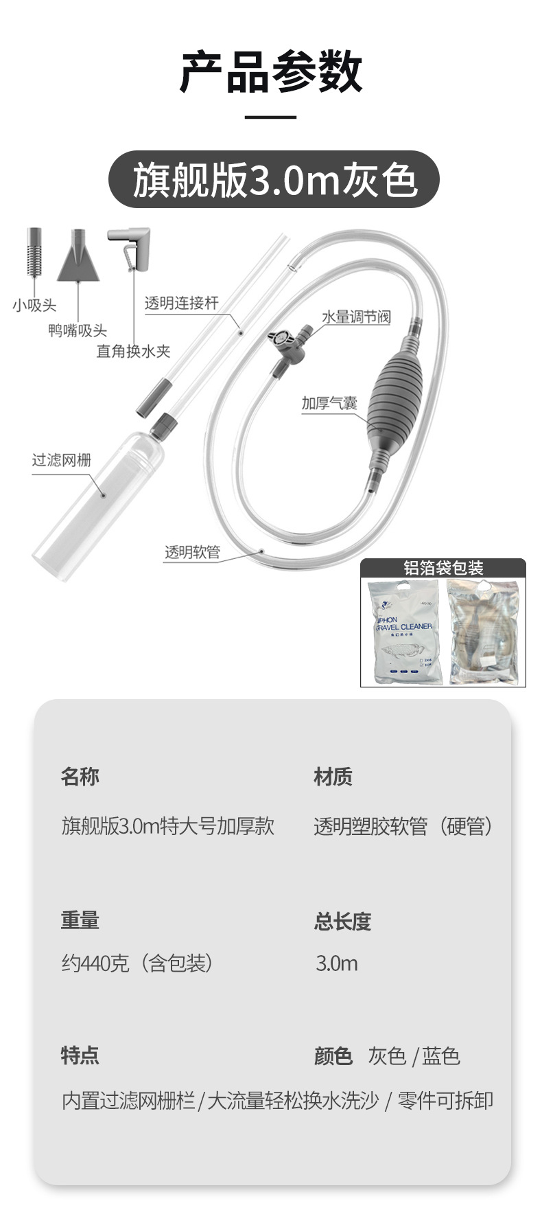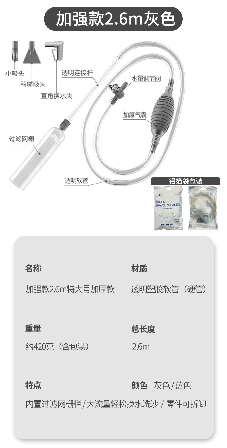 • 플래그십 버전 3.0m 물 교환기 파란색 + 직각 클램프, 소형 흡입 헤드, 덕빌 흡입 헤드