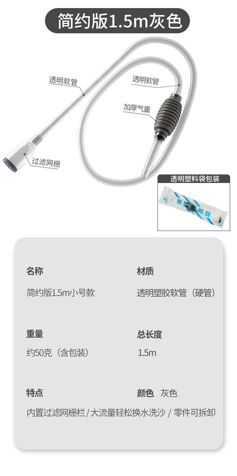 • [2024 신형 물고기흡입방지] 신형 1.5M 그레이 + 필터그리드