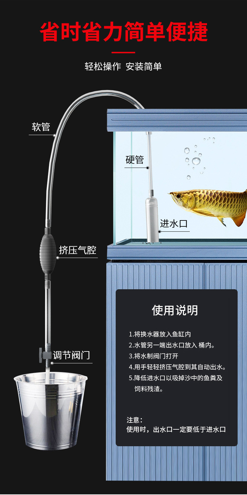 물고기 탱크 물 교환기 수동 화장실 빨판 작은 모래 세탁기 똥 빨판 수족관 청소 흡입 파이프