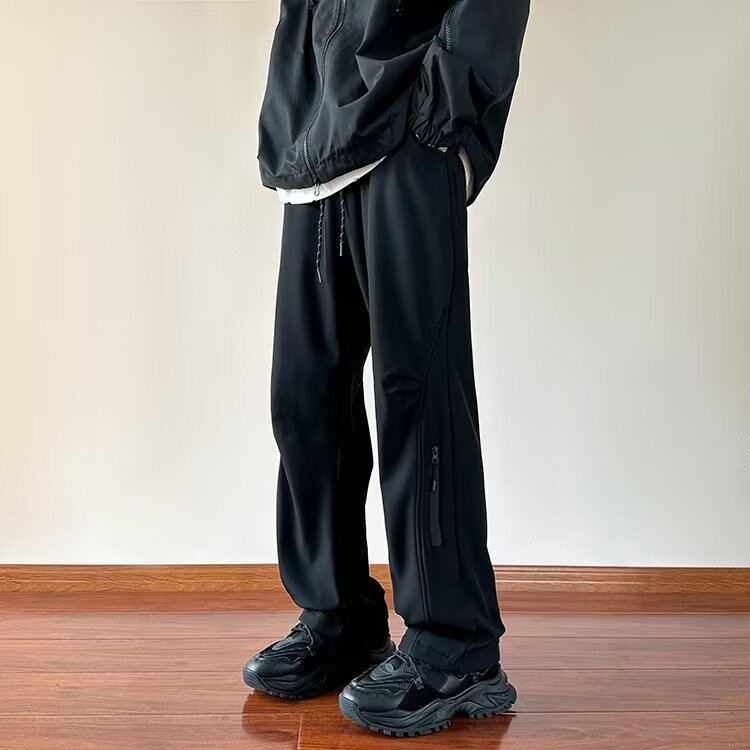 남자 겨울 기모 따뜻한 방수 방풍 야외 등반가 바지 미국식 하이 스트리트 블랙 스트레이트 잡힌 바지