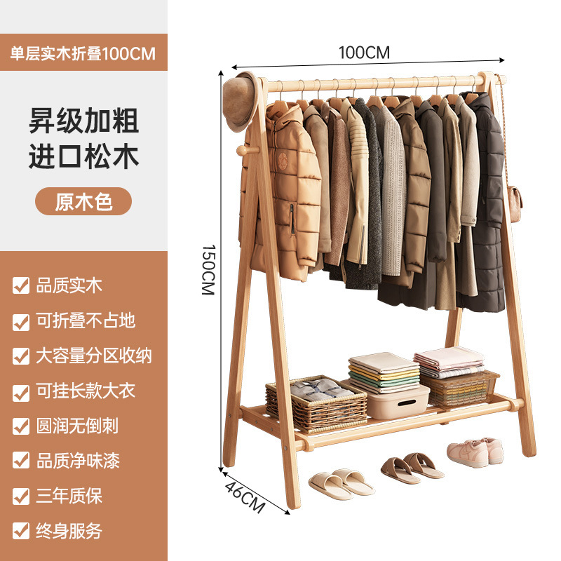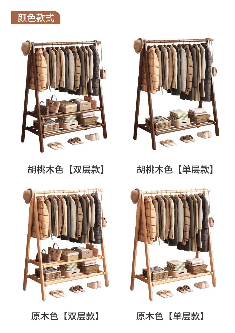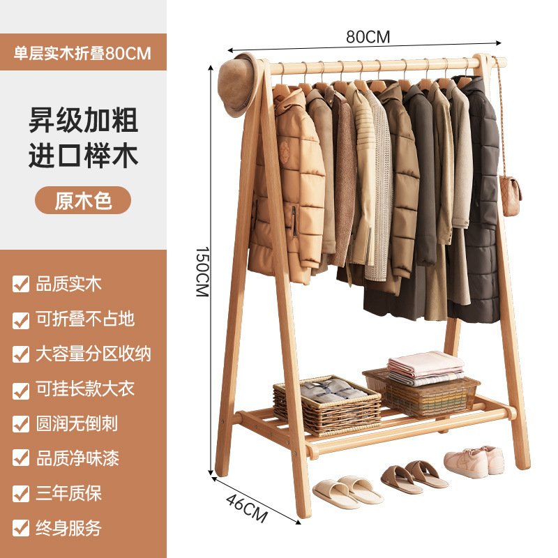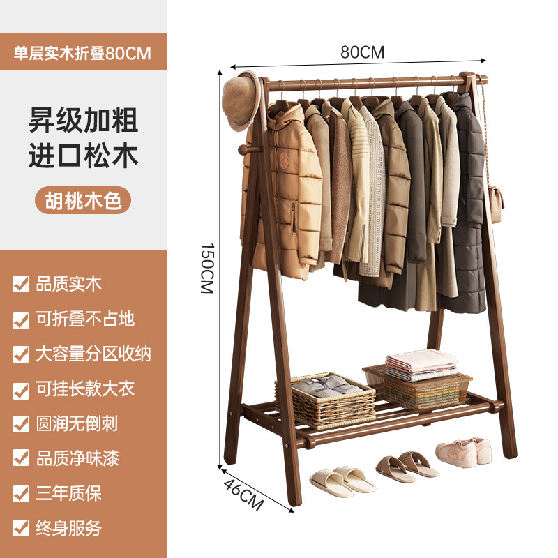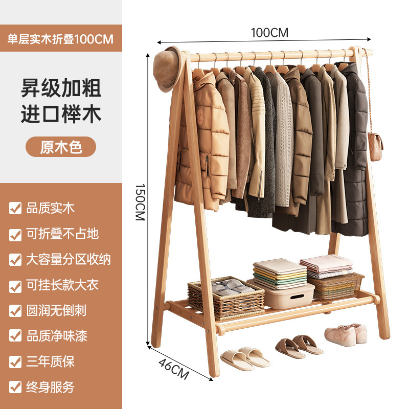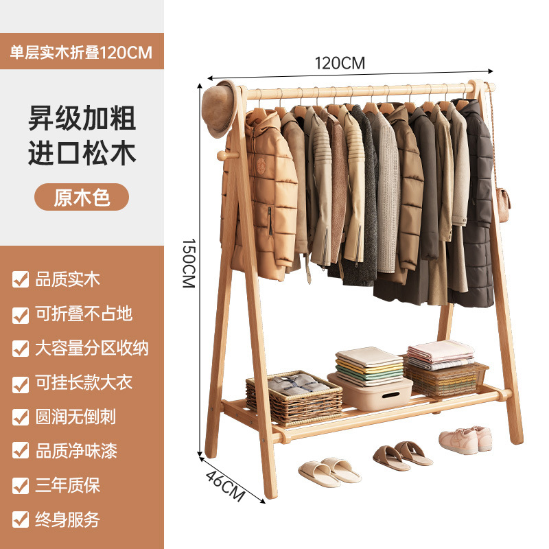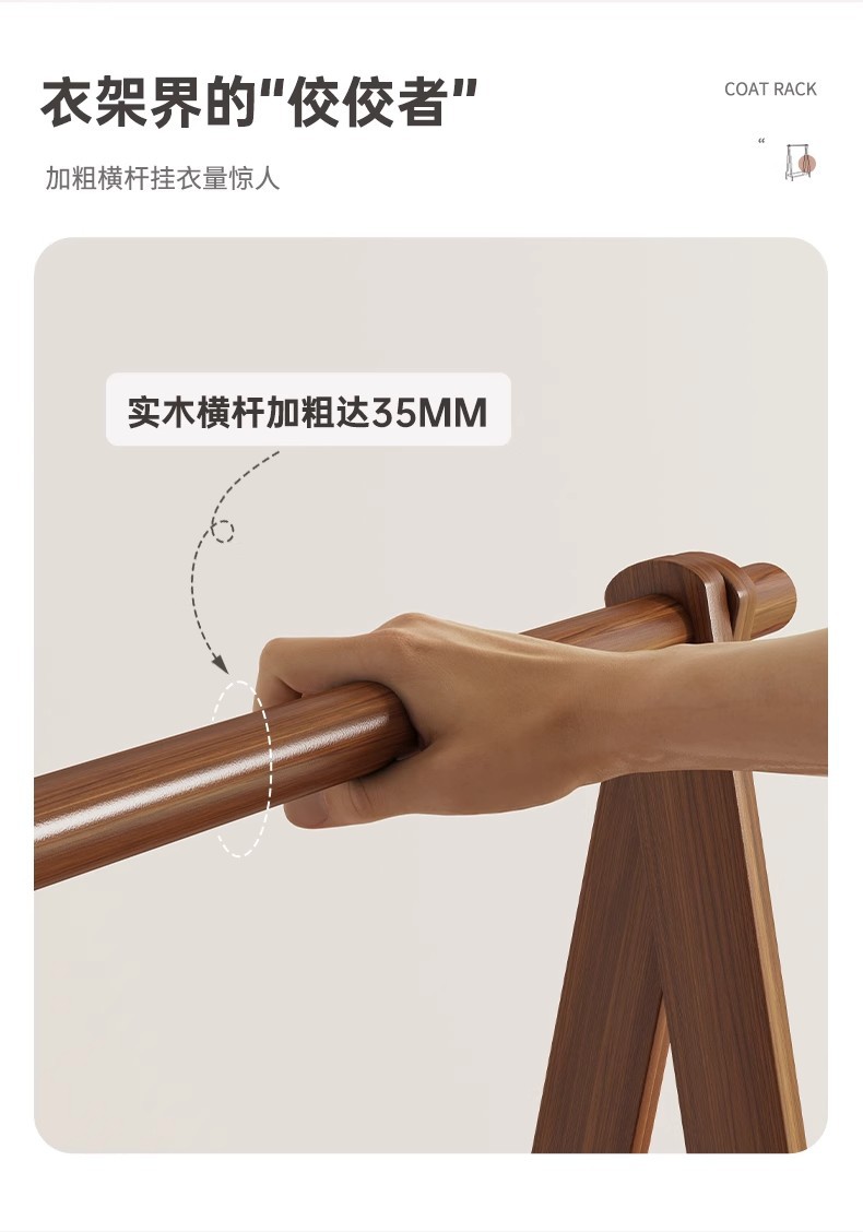 实木衣架加粗款落地家用卧室简易立式衣帽架室内房间收纳挂衣架子