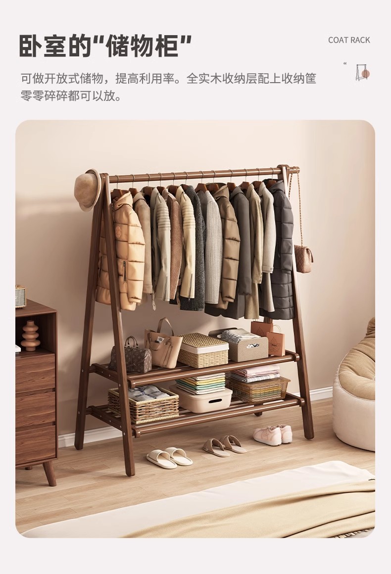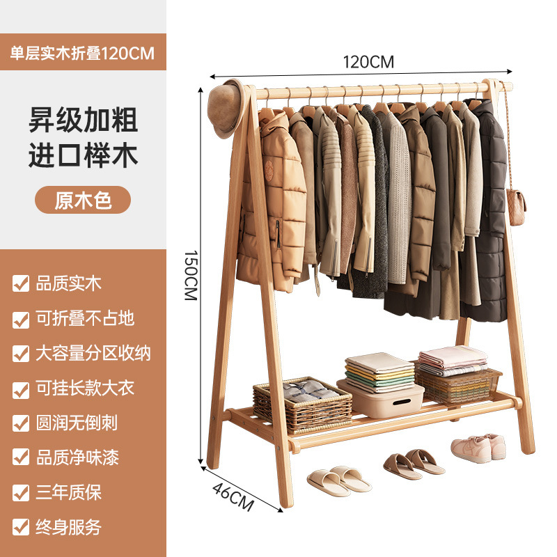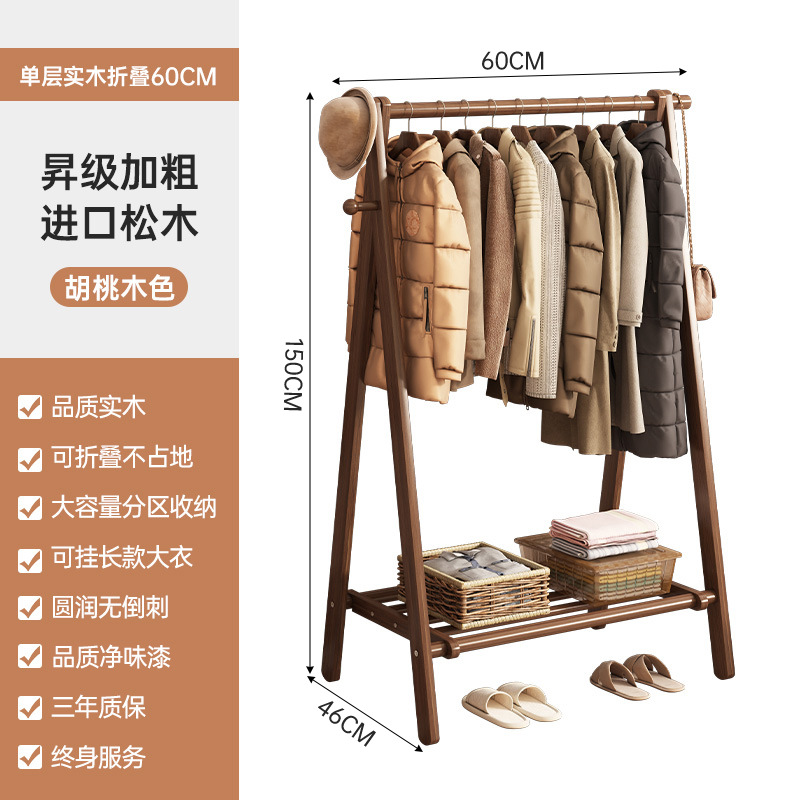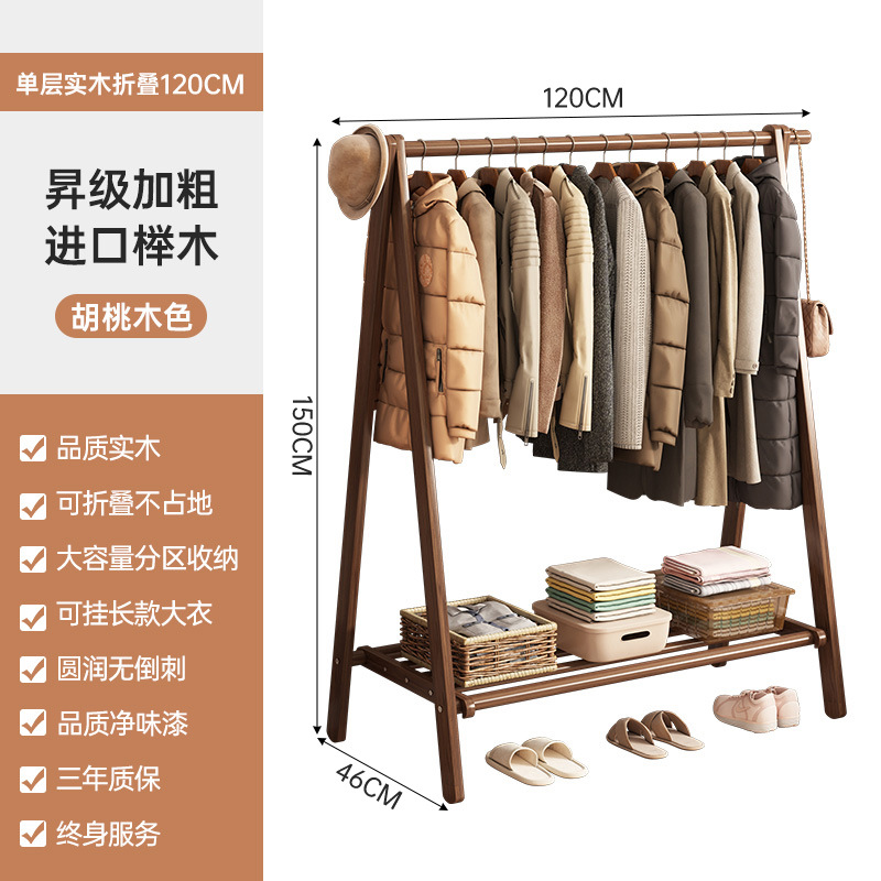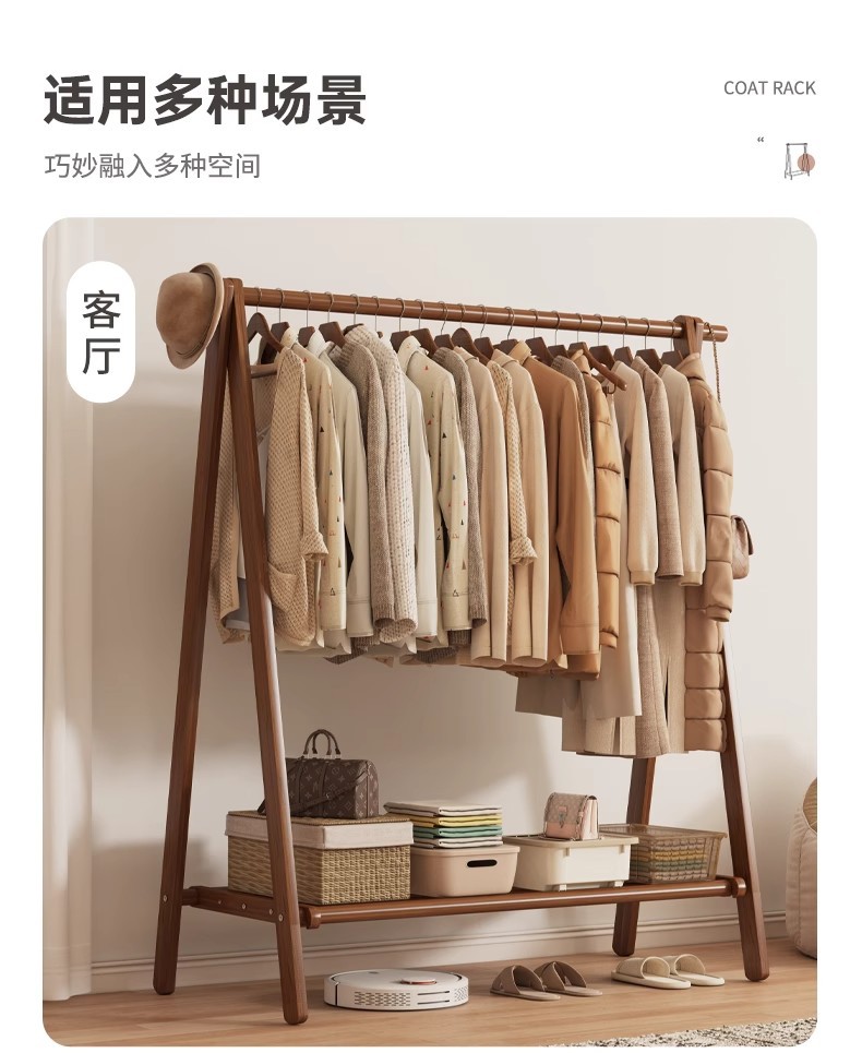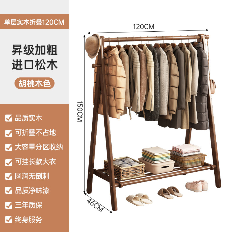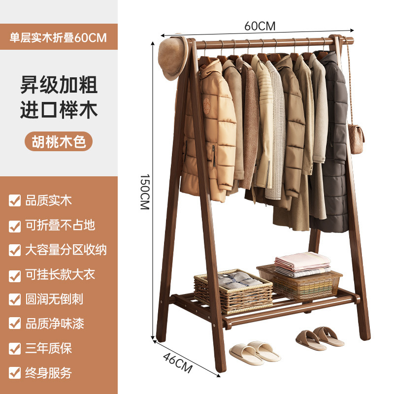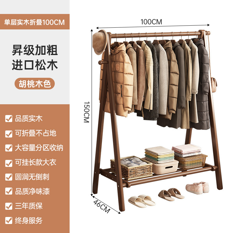 实木衣架加粗款落地家用卧室简易立式衣帽架室内房间收纳挂衣架子