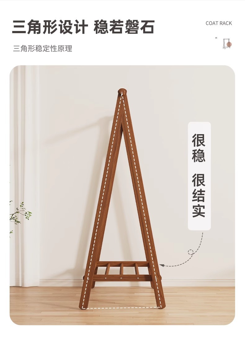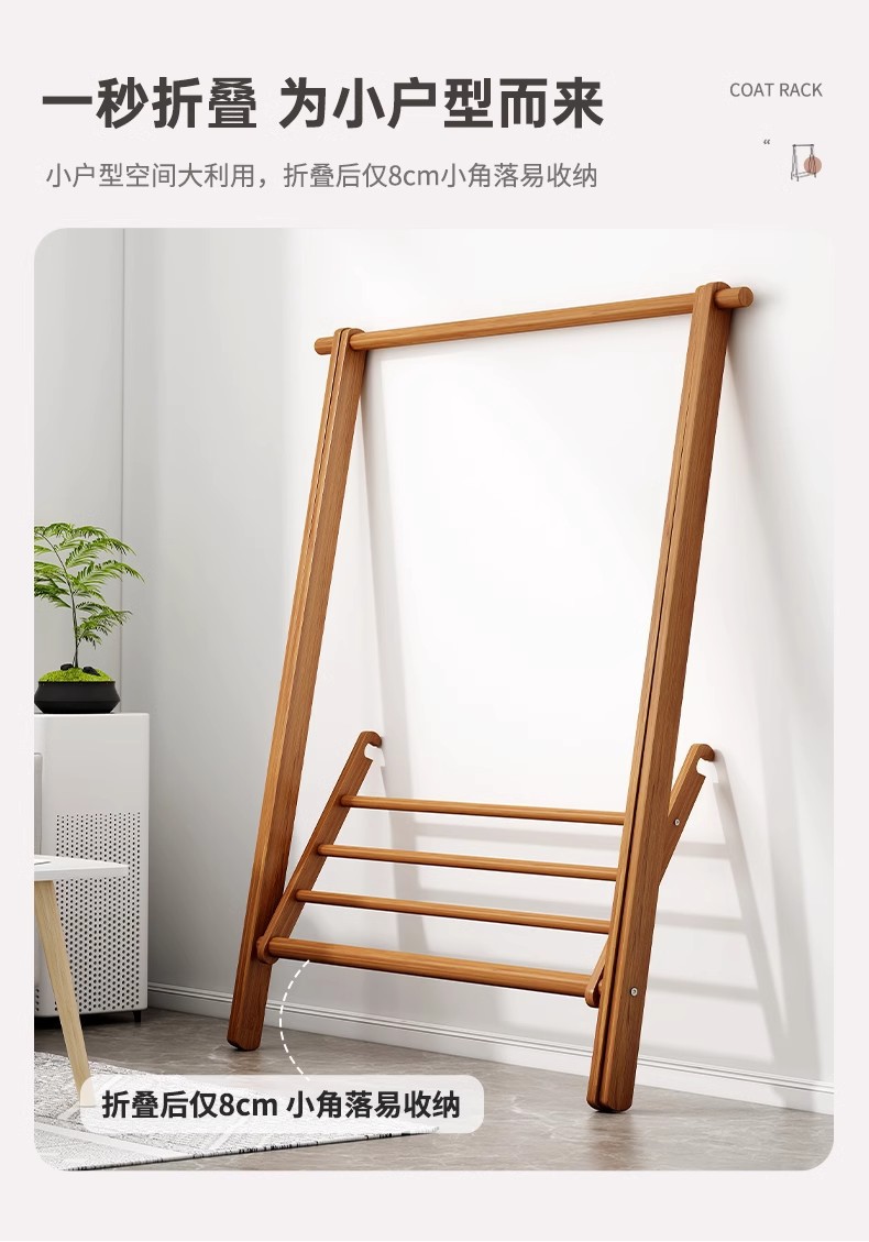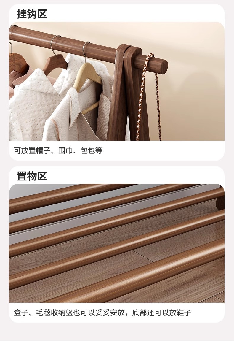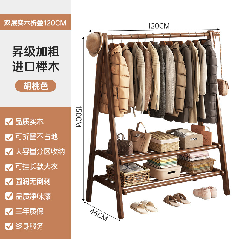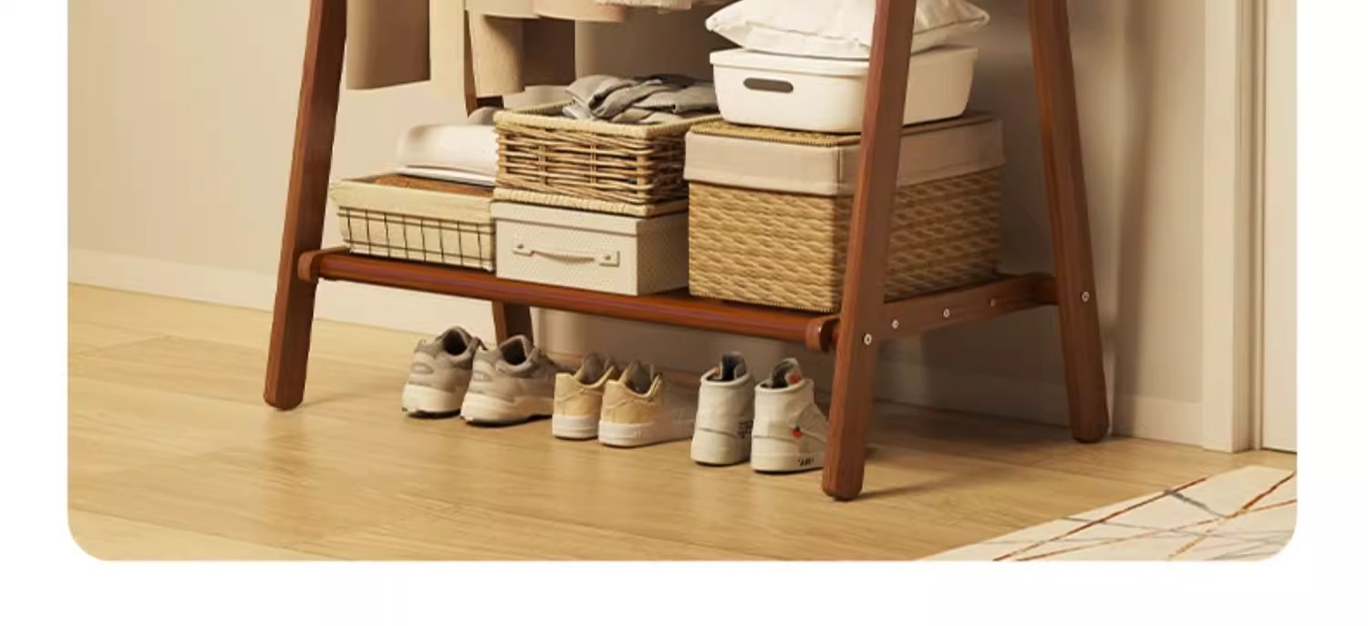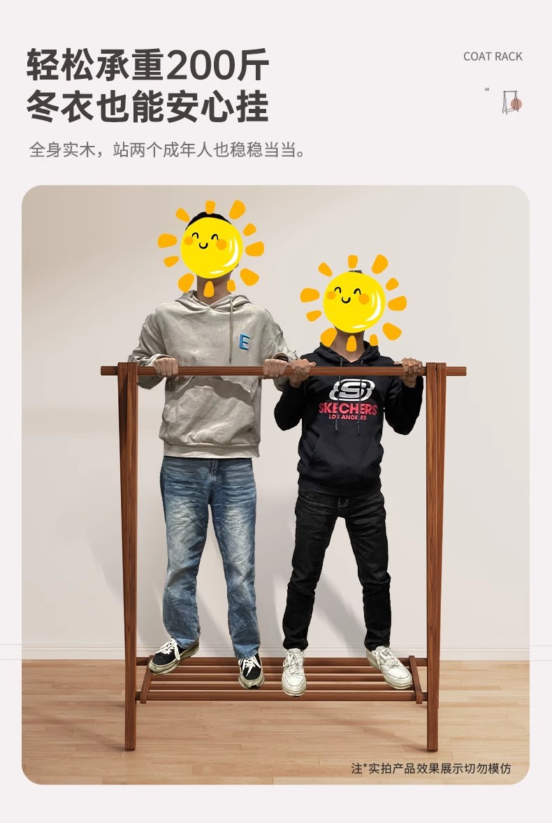 实木衣架加粗款落地家用卧室简易立式衣帽架室内房间收纳挂衣架子
