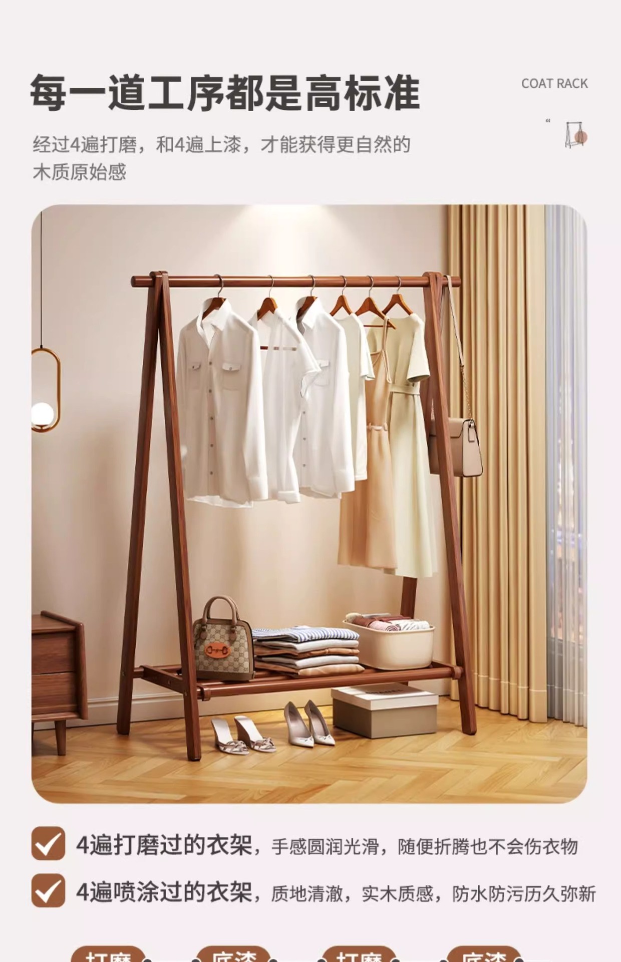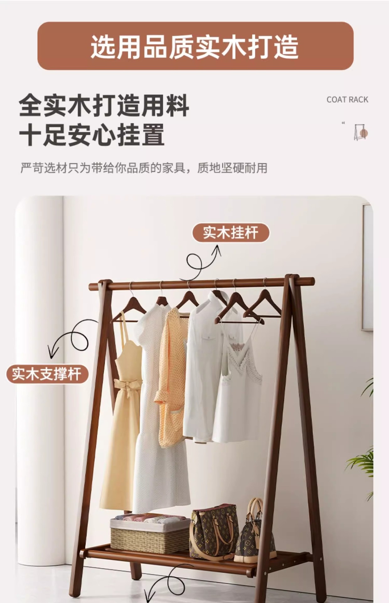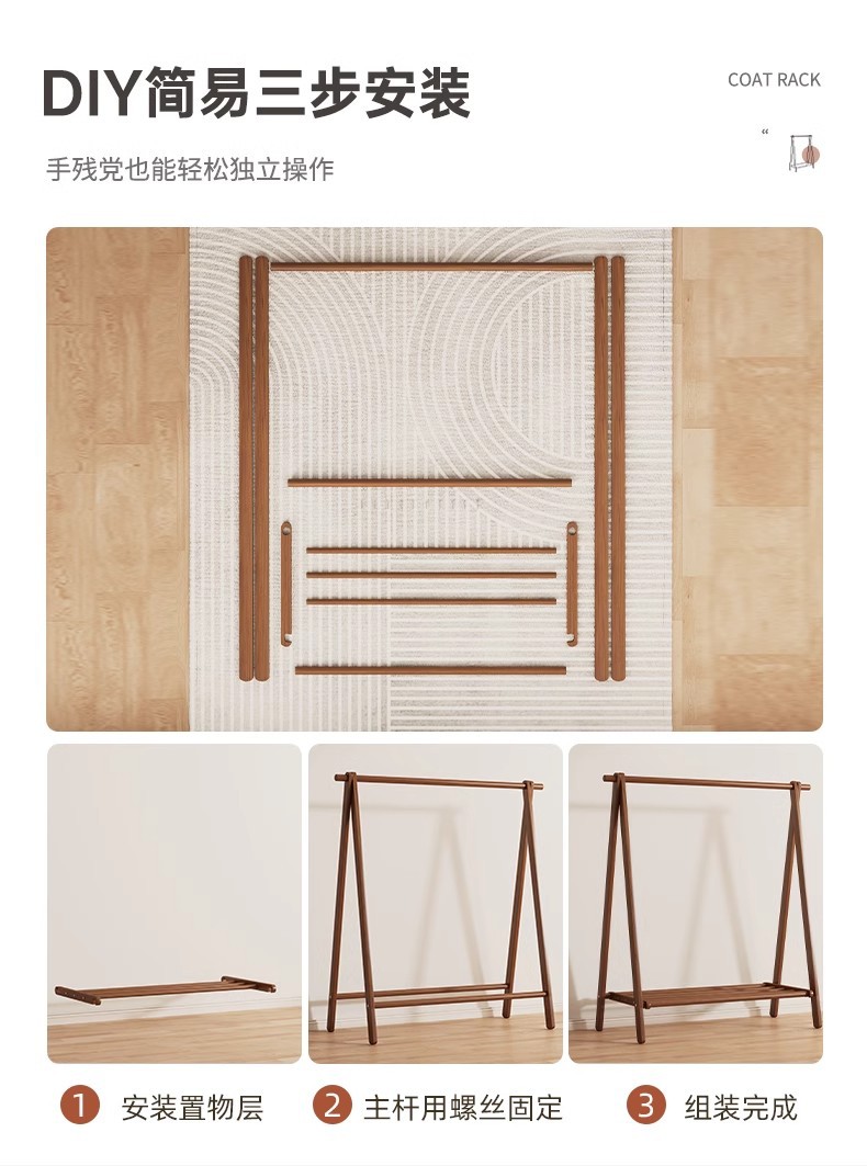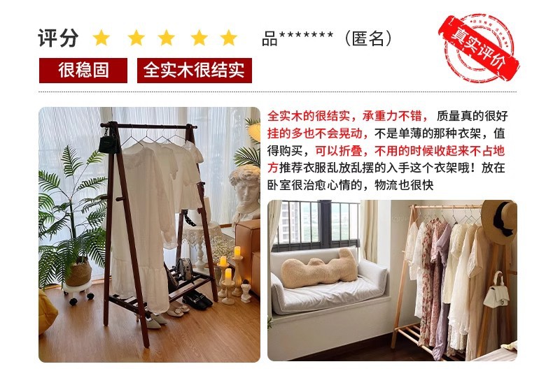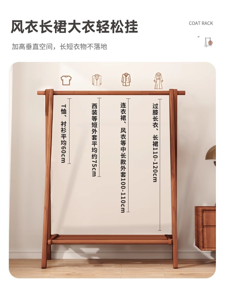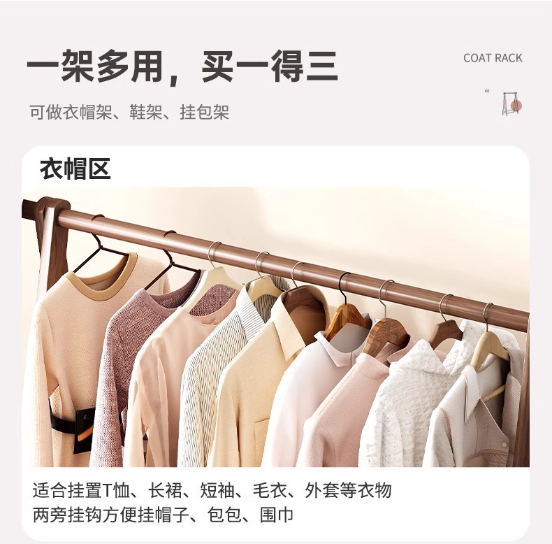 实木衣架加粗款落地家用卧室简易立式衣帽架室内房间收纳挂衣架子
