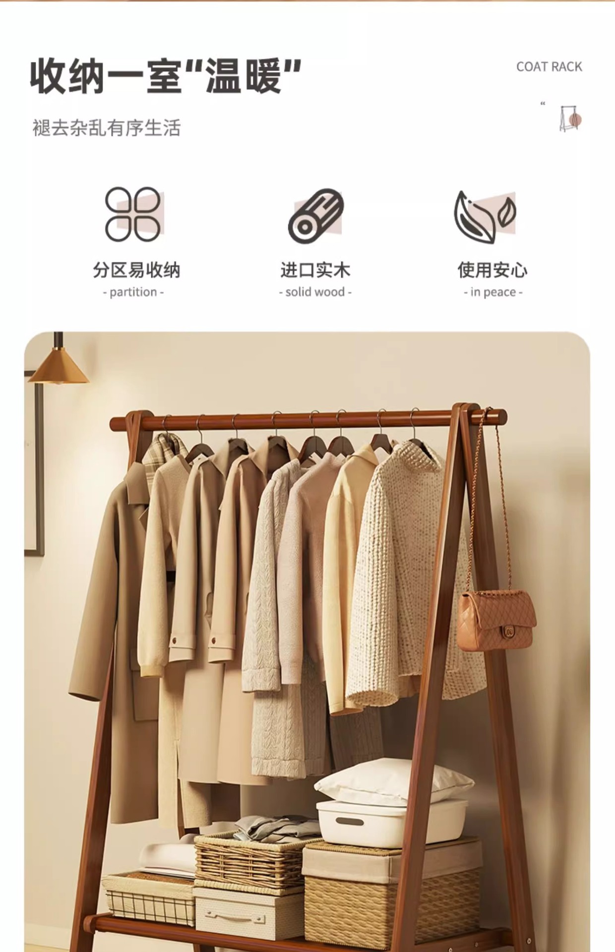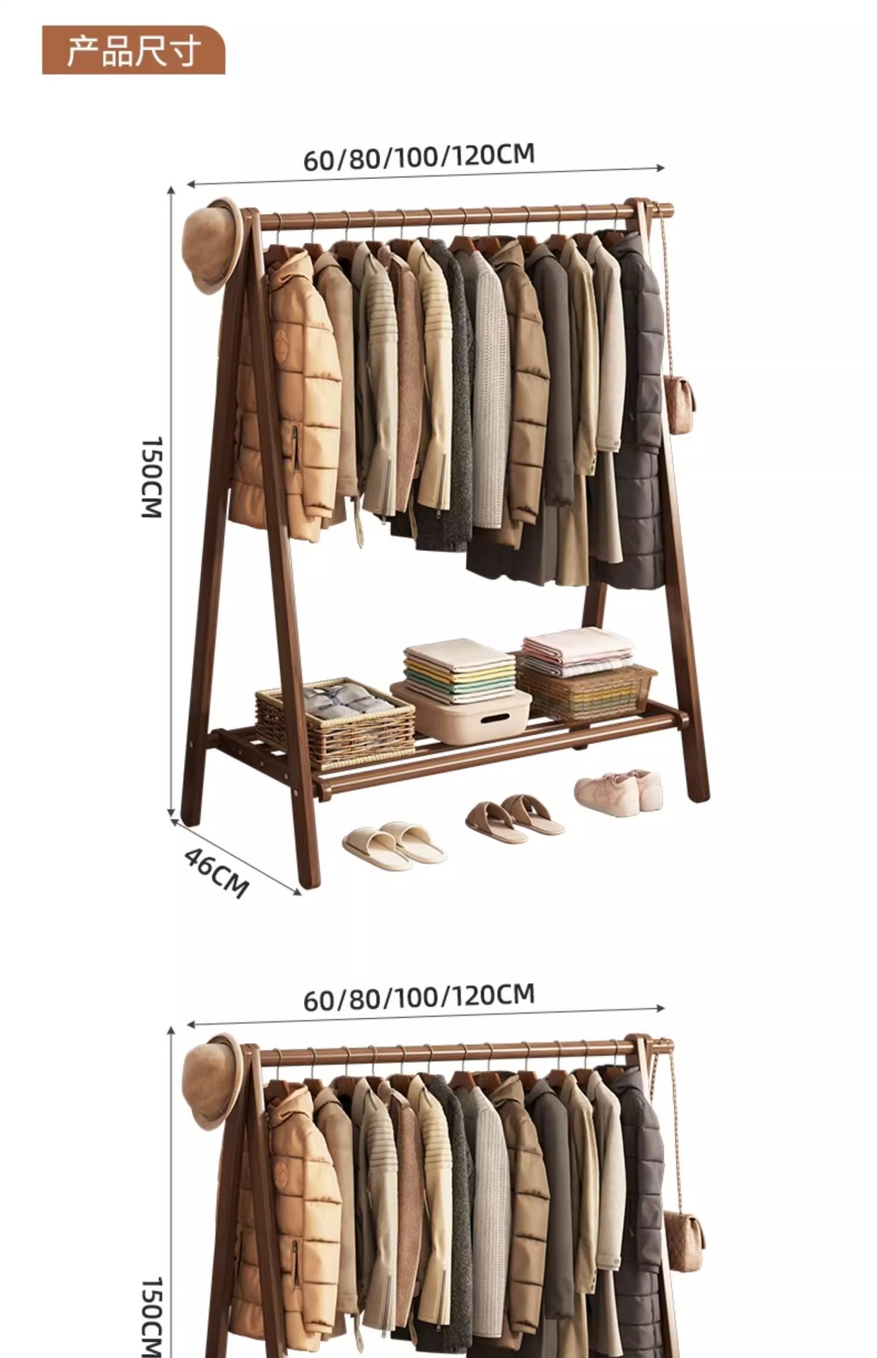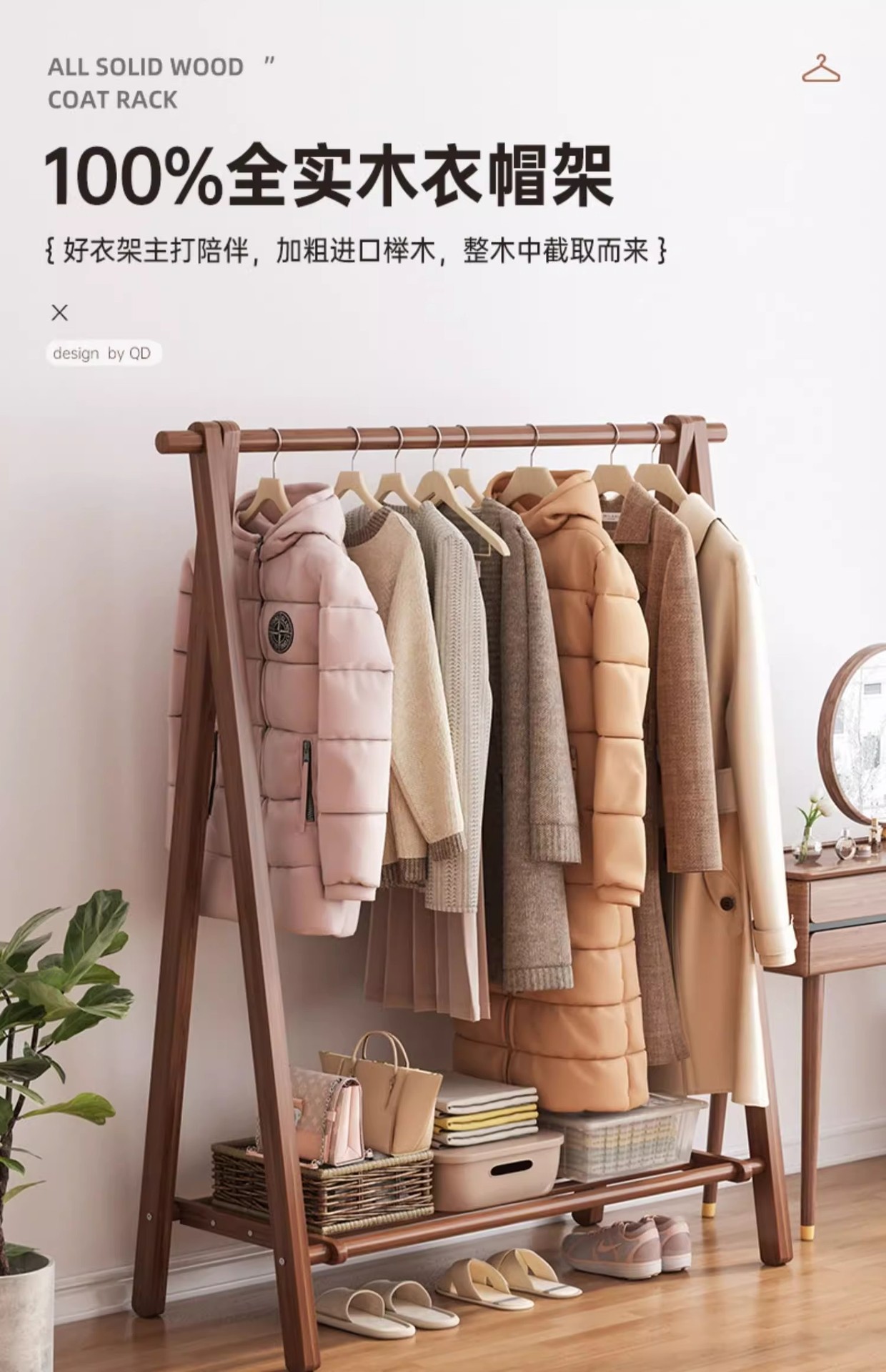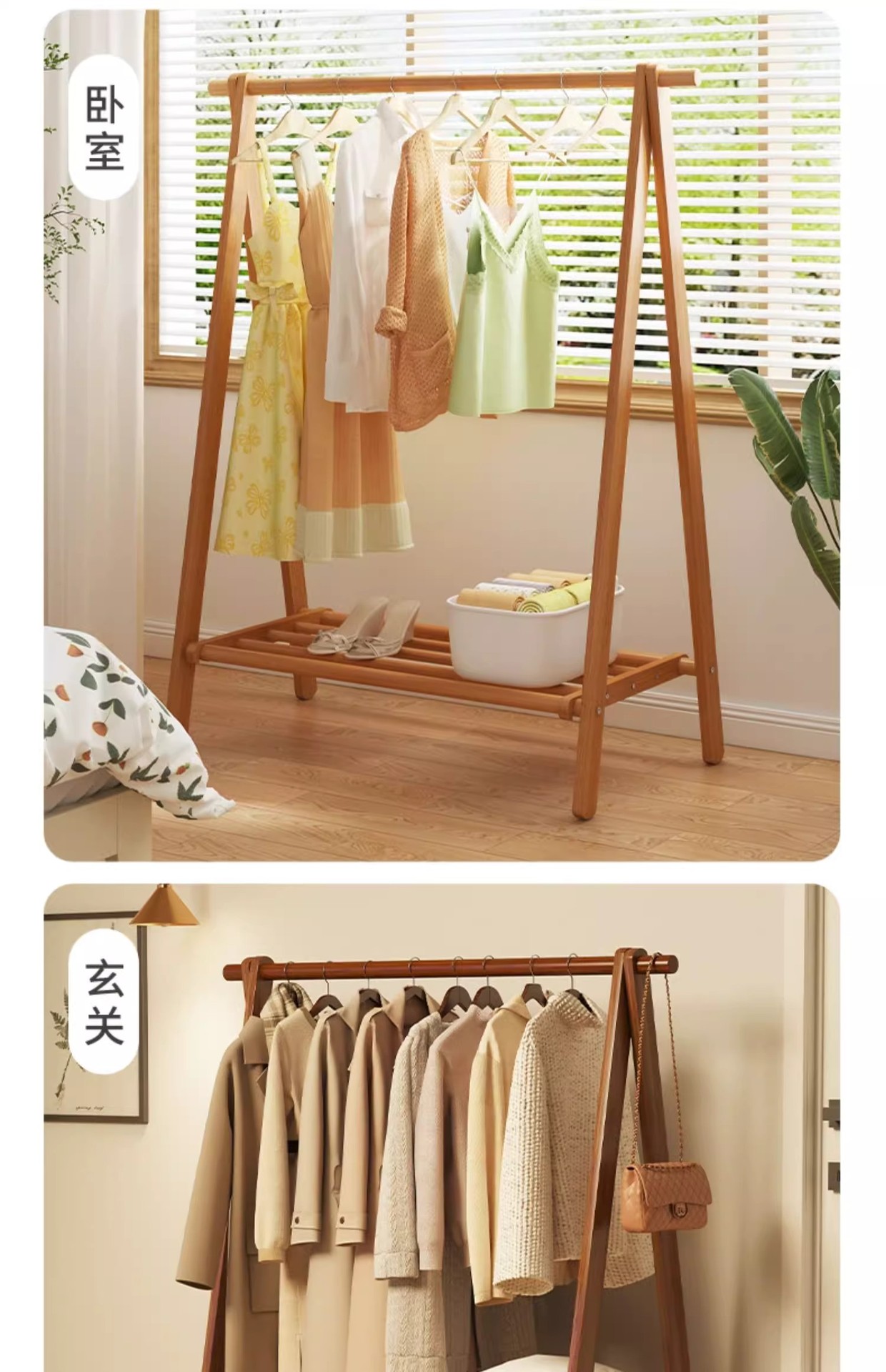 实木衣架加粗款落地家用卧室简易立式衣帽架室内房间收纳挂衣架子