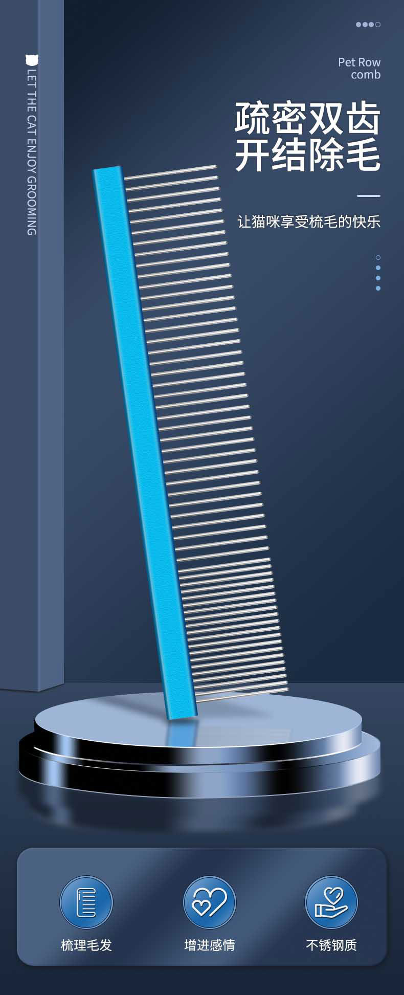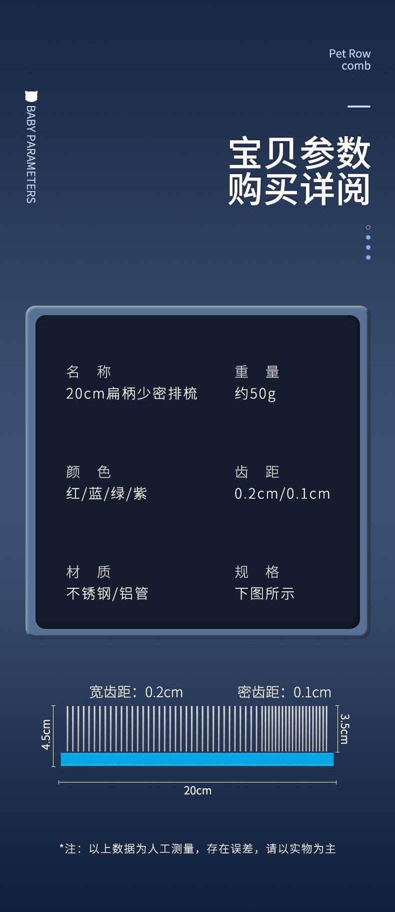애완 동물 고양이와 개를 위한 Hartley 빗 테디 헤어 선택 및 매듭 개선 미용 및 스타일링 20CM 플랫 핸들 빗스토어 가기