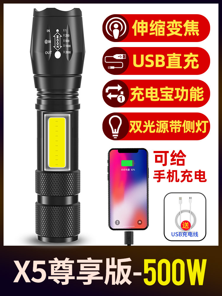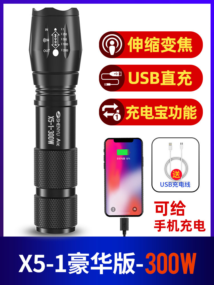 손전등 충전식 슈퍼 밝은 장거리 가정용 야외 작은 휴대용 미니 소형 LED 램프 충전 보물스토어 가기